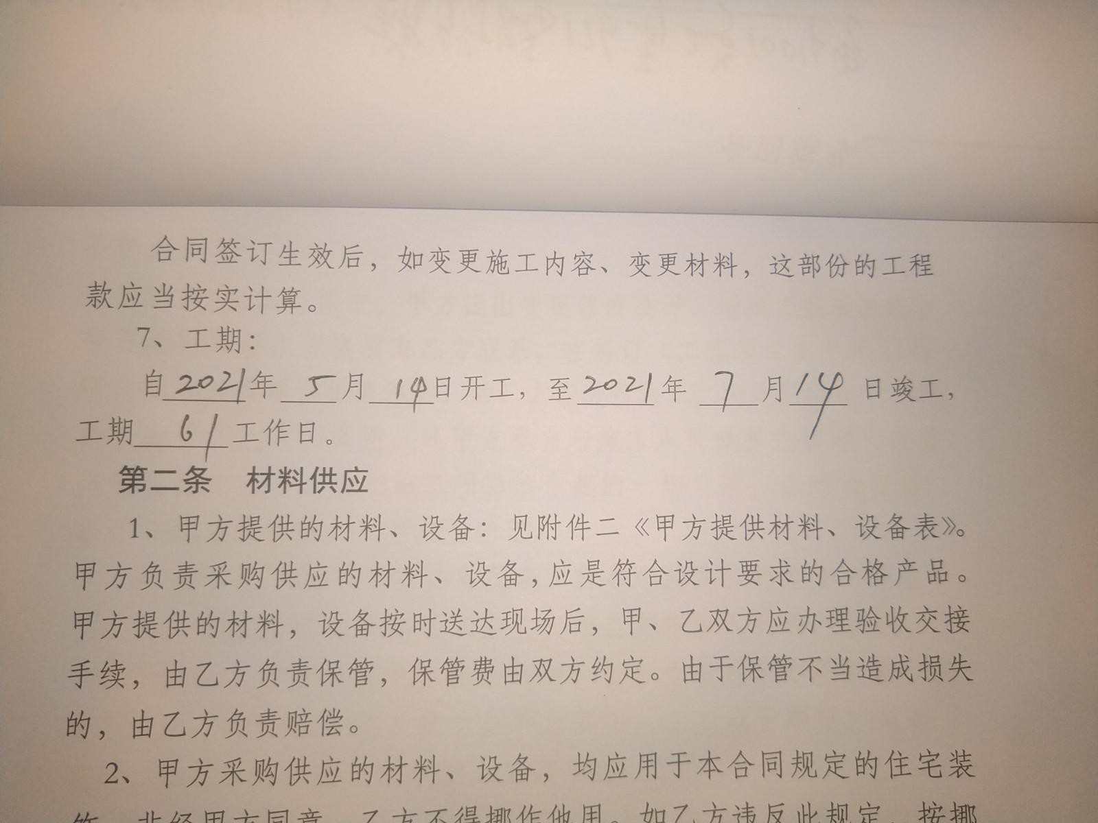 簽訂協議時工期是自2021年5月14日開工,至2021年7月14日竣工,但到現在仍未完工,可以說是違反了協議,并且其拖延原因并非慢工出細活,而是承包方并未合理安排施工進度,使房屋的裝修斷斷續(xù)續(xù),到后期我們無奈之下花費大量時間催促后才有改善。