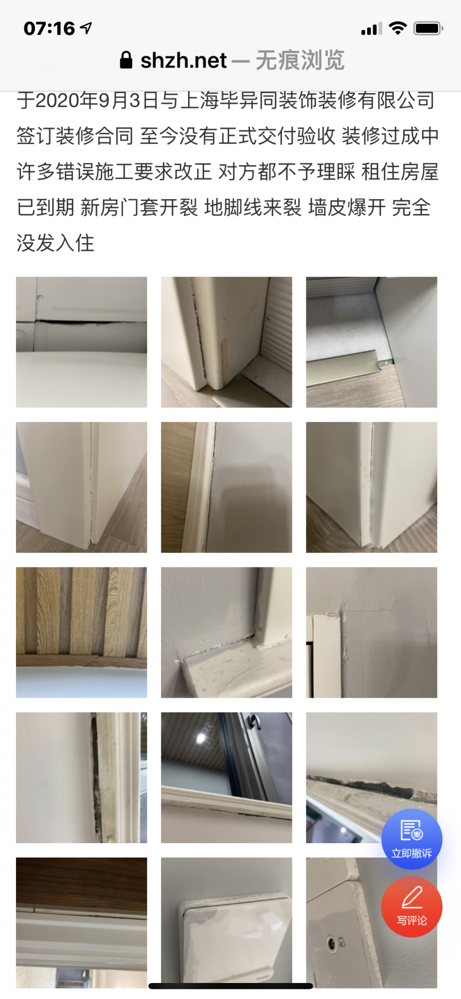 | 投訴類型 | 施工質(zhì)量 | 投訴人 | 謝** | 被投訴單位 | 上海畢異同裝飾工程有限公司 |