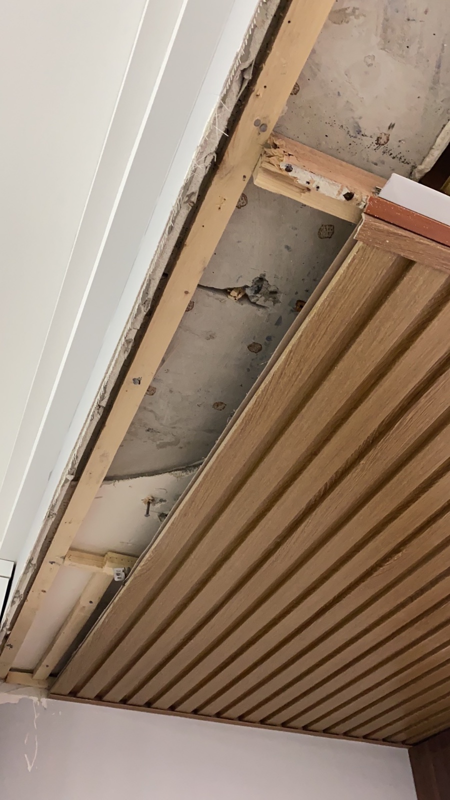 木工返工的圖片 后來裝移門時木工吊頂直接掉了下來 又現(xiàn)場叫了人來重新做 裝移門我整整耗了一整天