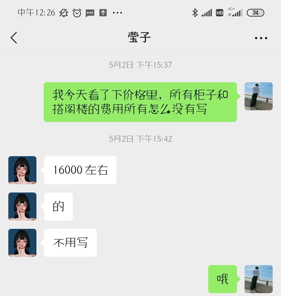 開(kāi)工到現(xiàn)在基本靠施工隊(duì)聯(lián)系的多,設(shè)計(jì)師就是一個(gè)擺設(shè),從不與業(yè)主溝通,基本業(yè)主發(fā)現(xiàn)問(wèn)題一而再再而三才會(huì)回應(yīng)下,回應(yīng)的也都是無(wú)關(guān)緊要的,從不正面回答問(wèn)題,也不解決問(wèn)題,就會(huì)一味的加錢(qián)。把所有問(wèn)題都推脫給佳園公司或者是材料供應(yīng)商。當(dāng)初簡(jiǎn)直就是被她表面細(xì)聲柔弱所欺騙。當(dāng)初選擇有多相信她現(xiàn)在就有多諷刺,閣樓不做是樓梯柜和櫥柜和拆除。但后面變熱水器沒(méi)包括,書(shū)桌也沒(méi)包括,廚房吊頂也沒(méi)有。投訴電話和去公司都沒(méi)解決。