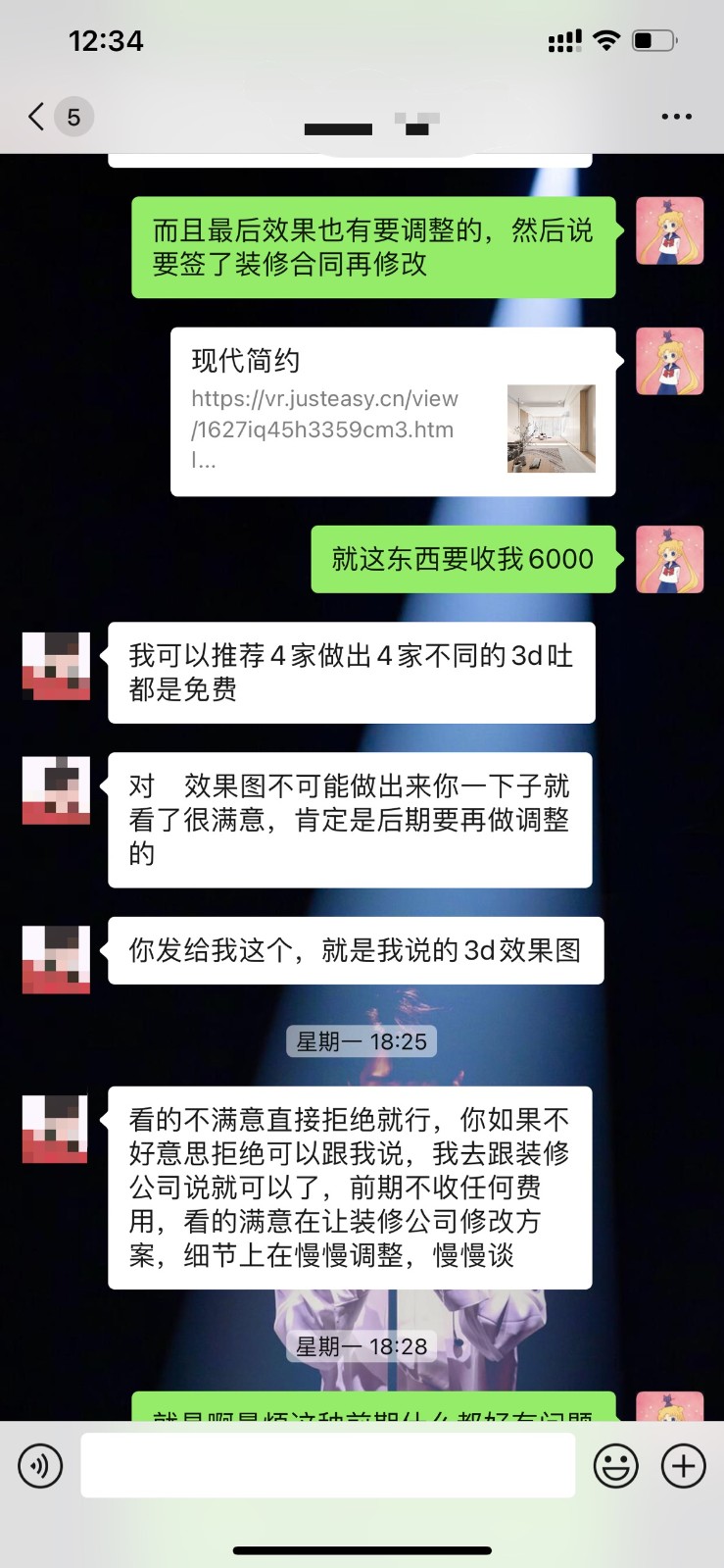 2021年7月25日給我出了4個(gè)空間的3D效果圖,后期調(diào)整了兩次后仍有不滿意的地方,再要求調(diào)整后孫一諾(孫威)要求簽訂裝修合同并支付10w首款后再做進(jìn)一步調(diào)整和后期工作讓盡快說(shuō)服長(zhǎng)輩,聲稱(chēng)8月的優(yōu)惠力度很大不要錯(cuò)過(guò);經(jīng)過(guò)幾次溝通后家中長(zhǎng)輩不滿意也不同意后我再聯(lián)系兩位設(shè)計(jì)師告知情況;