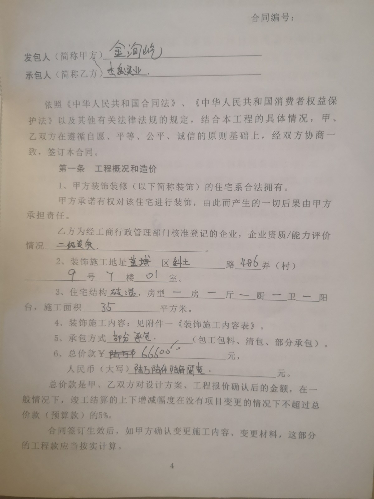 | 裝修面積 | 35m2 | 投訴人手機(jī) | 1752113**** | 被投訴人手機(jī) | 1771737**** |