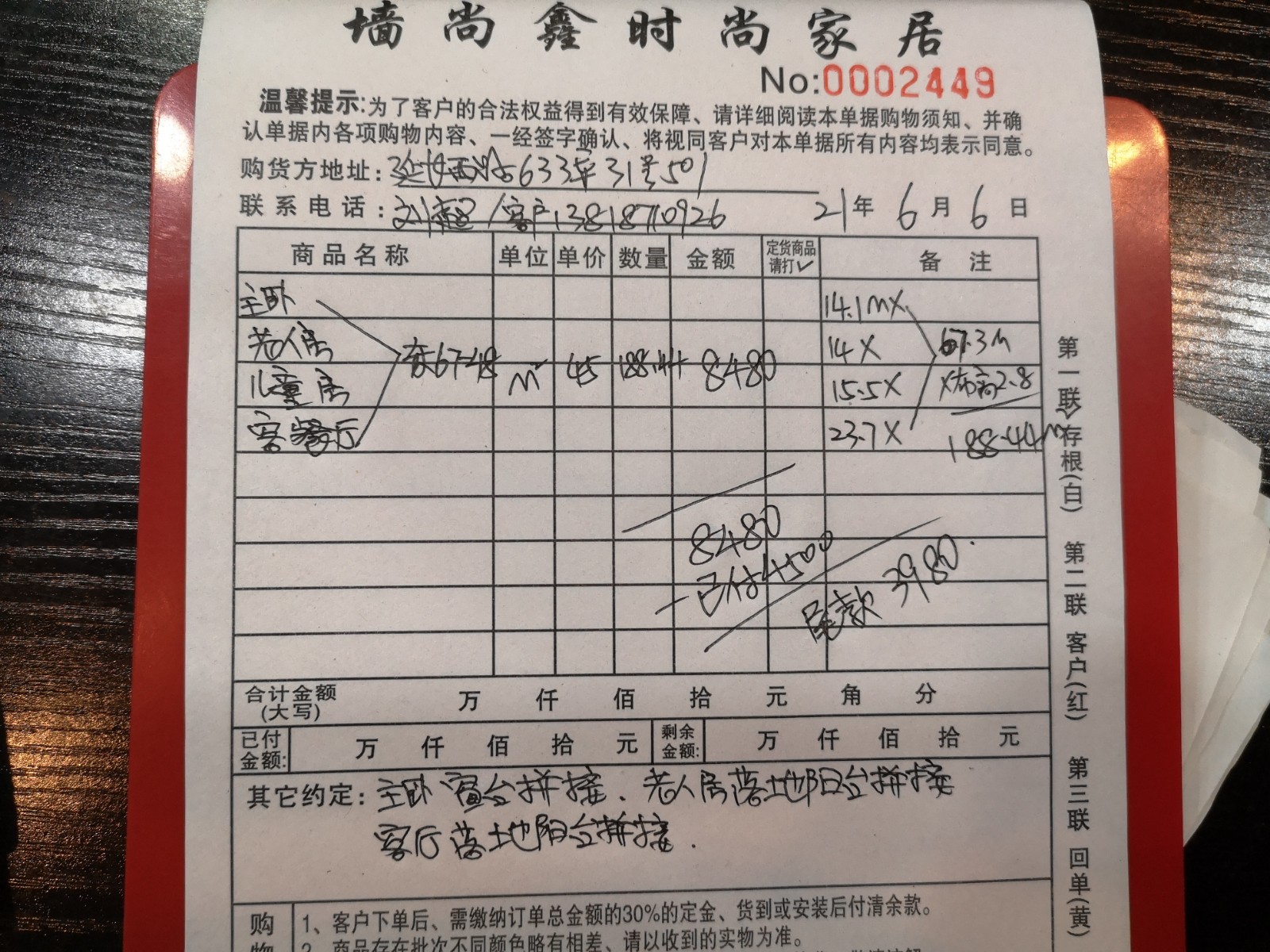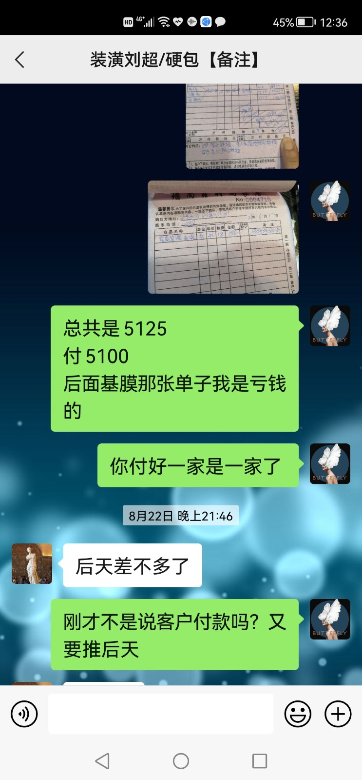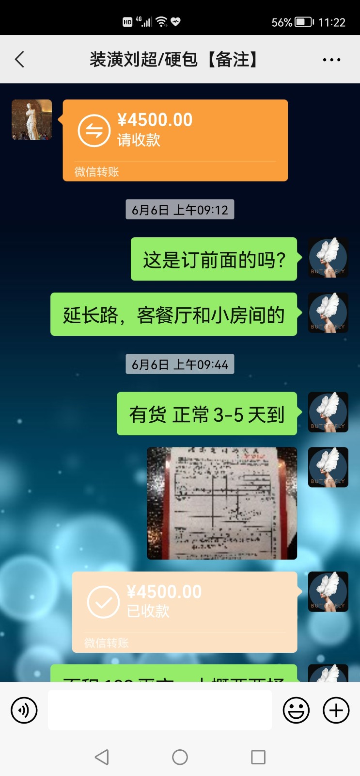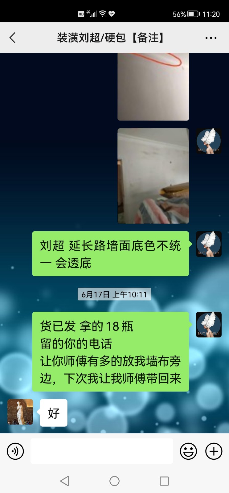 下單時付了一部分貨款 剩余貨款說好施工完畢付完 后期上門施工時發(fā)現(xiàn)現(xiàn)場墻面顏色不統(tǒng)一,我又另外幫他拿了18瓶美士星蓋世英雄白色基膜,這筆費(fèi)用也是沒有付,后面做好幾個月了 一直說沒交房,沒拿到錢,快了快了……,一直推脫時間。到現(xiàn)在直接不接電話,不回信息