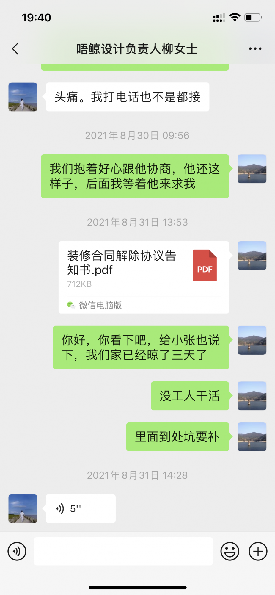 甲乙雙方約定乙方為甲方提供位于閔行區(qū)古美西路753弄31號101室的房屋裝修事宜,開工時間為2021年6月2日,房屋裝修交付時間是2021年7月20日,施工面積90平方米,合同總金額是85000.00元整。由于乙方缺乏施工管理和施工標準,沒人統(tǒng)一管理,導致施工效率低下,工程質(zhì)量各種問題頻出,乙方項目逾期嚴重,到2021年8月28日還未完工,給甲方造成了很大經(jīng)濟損失和影響。 在2021年8月28日,雙方負責人及工程關(guān)鍵人員商量裝修完工事宜時,乙方又提出了無理的增項要求,甲方未答應(yīng),乙方第二天就停止了裝修施工,從8月29日開始,再未有乙方施工人員進場。由于乙方停止施工,給甲方造成了很大經(jīng)濟損失和精神傷害。甲方于從8月30日轉(zhuǎn)發(fā)了合同解除告知協(xié)議后,甲方自行找其它裝修工人完善后續(xù)工程,在2021年9月28日,之前裝修工頭跑來向我們要錢,說裝修公司欠工人錢不給,找我們要錢,我們該付的費用已經(jīng)付給裝修公司,現(xiàn)在我們投訴裝修公司,按合同對甲方進行違約賠償,并且賠償甲方后期請施工隊施工所花10000.00多元費用,合同款的30%,并要求裝修公司盡快支付裝修隊工人工資費用。