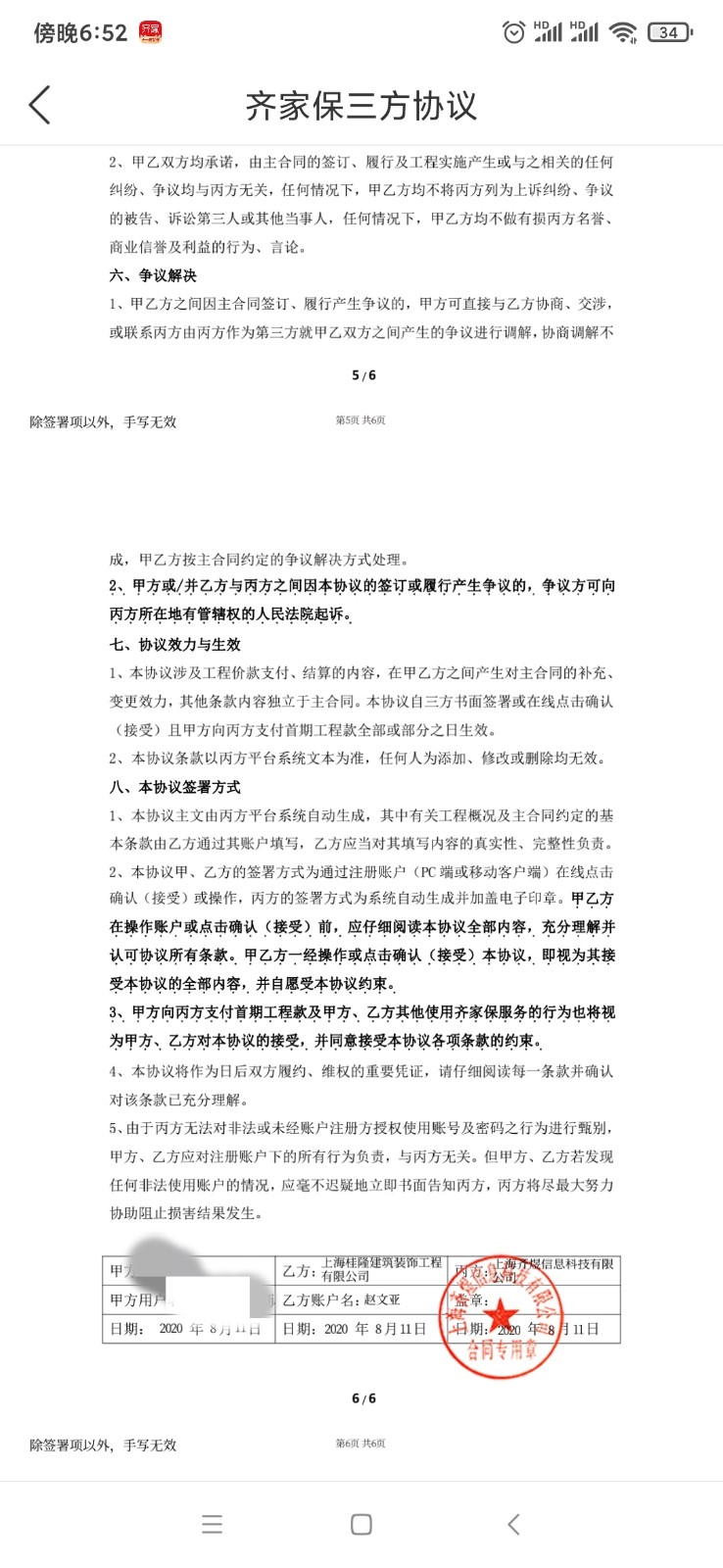 而第三方齊家網(wǎng),在我們跟他們把桂隆公司的所作所為投訴了多次之后,也沒有結(jié)果,并說(shuō)如果無(wú)法雙方一致同意賠償金額,就只能讓我們顧客自己走法律途徑。存在監(jiān)管不力的問(wèn)題!