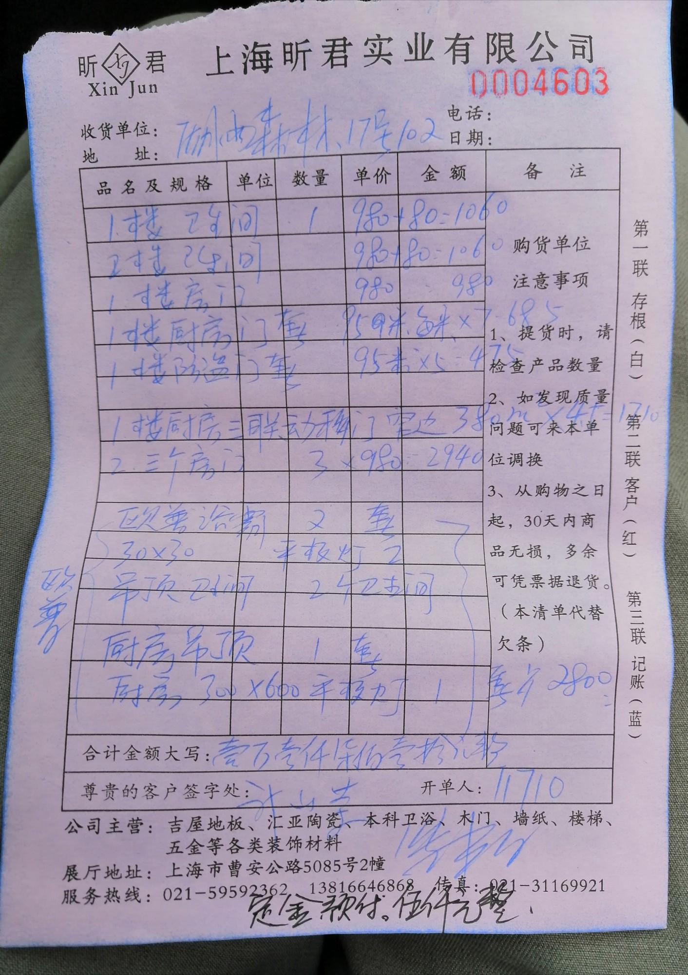 尊敬的上海裝潢網(wǎng)老師你們好:我于2020年09月26日與愛(ài)屋吉屋上海壯華裝飾設(shè)計(jì)工程有限公司簽約的裝修(半包)合同,裝修期為90個(gè)工作日完工,但是至今還沒(méi)有完成,尤其是我訂的是復(fù)合多層木門,但裝好后發(fā)現(xiàn)是復(fù)合密度板木門,以次充好,偷梁換柱,這個(gè)密度板木門裝在衛(wèi)生間里受潮易壞,跟裝修公司多次提出,一直不解決。裝修中也發(fā)現(xiàn)了幾個(gè)問(wèn)題,如水進(jìn)戶沒(méi)裝總閥,水管變小,封管的留口沒(méi)做好(檢測(cè)口)還有瓷磚有損壞,空鼓等問(wèn)題。