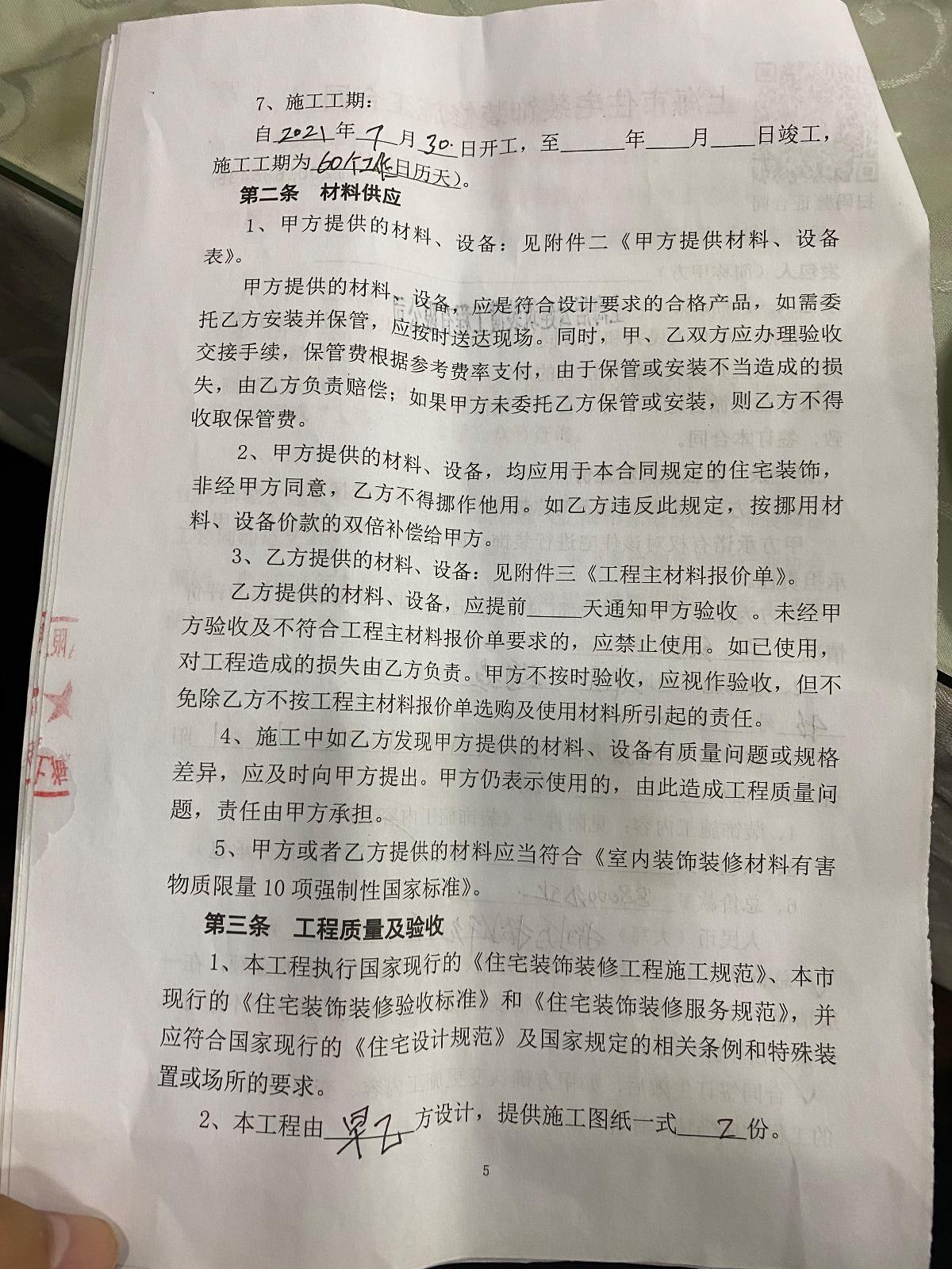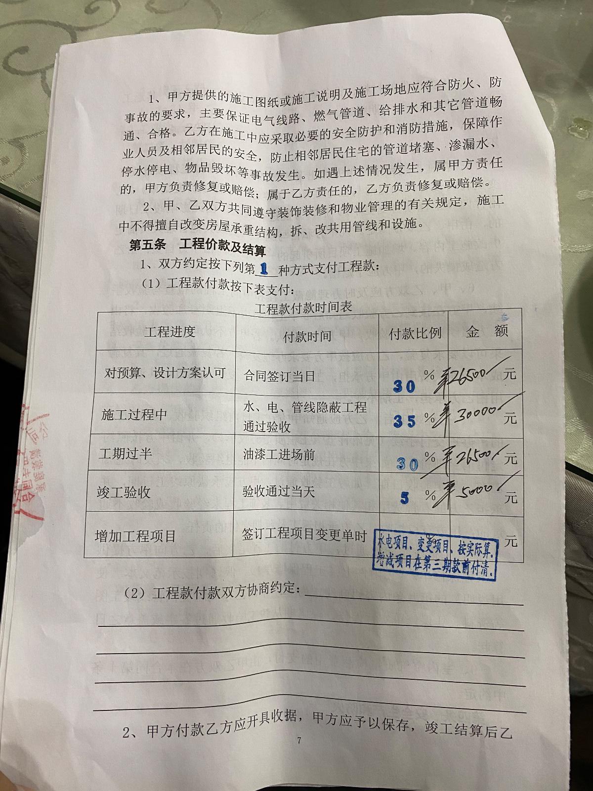 三,在交要第三筆款后,總金額八萬八,交到八萬三后,又告知我們還要再交兩萬七的增項費用才給施工,今天已經到合同約定的完工日了才干了一半,木地板,門和門套,櫥柜臺面,櫥柜以及衣柜門板均未完成。再這基礎上還要讓我們增加費用。