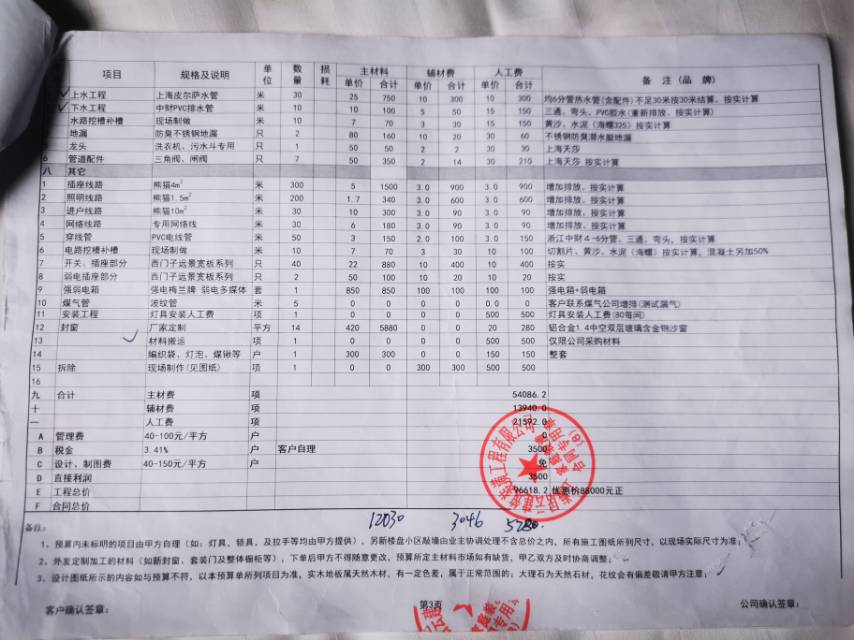 4.簽訂的合同中已有的款項(xiàng)隨意增加差價(jià),施工前已協(xié)商好的木地板、大理石臺(tái)面等突然補(bǔ)差價(jià)。