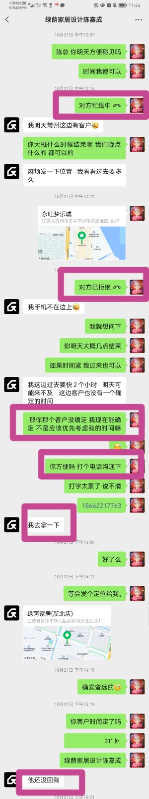 設(shè)計(jì)師回去后,我還是心里不踏實(shí),想要各種主動(dòng)溝通,微信不回復(fù),私信也是特別慢。整個(gè)溝通全是我主動(dòng),他們特別被動(dòng),就什么都不用心,然后我說(shuō)微信說(shuō)不清,打電話(huà)吧 不行就碰面聊,他說(shuō)明天約了客戶(hù)啥的,反正溝通特別累,如果是這樣的銜接我覺(jué)得就是我在設(shè)計(jì)而不是他,而且收完錢(qián)后他們就非常被動(dòng),沒(méi)有一個(gè)能給我及時(shí)反饋的東西。我對(duì)他們已經(jīng)徹底失去信心。