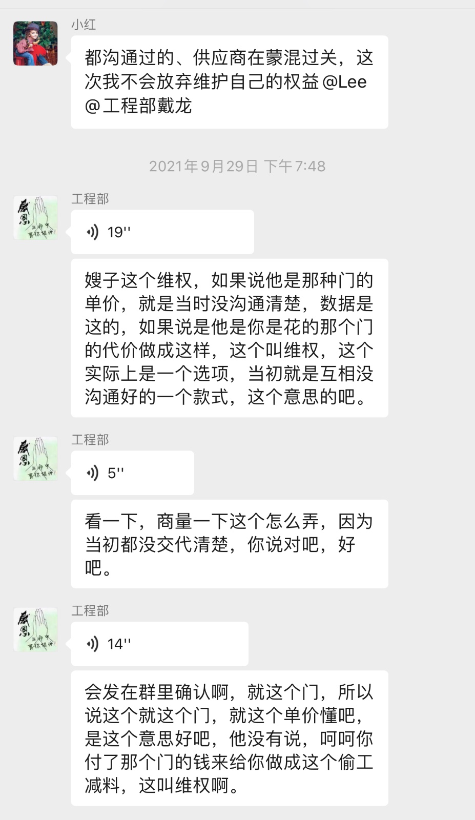 3月7日至今曾多次去該公司或是上門洽談,但是效果并不理想,該公司相關(guān)人員互相踢皮球,說(shuō)要解決問(wèn)題,卻無(wú)人解決,竟然私下要求供應(yīng)商直接上門在客戶門口圍堵,客戶致電給他們竟然聲稱不是自己要求的。在2021年如此的法治社會(huì)還能碰到這種事,真是讓人大跌眼鏡!