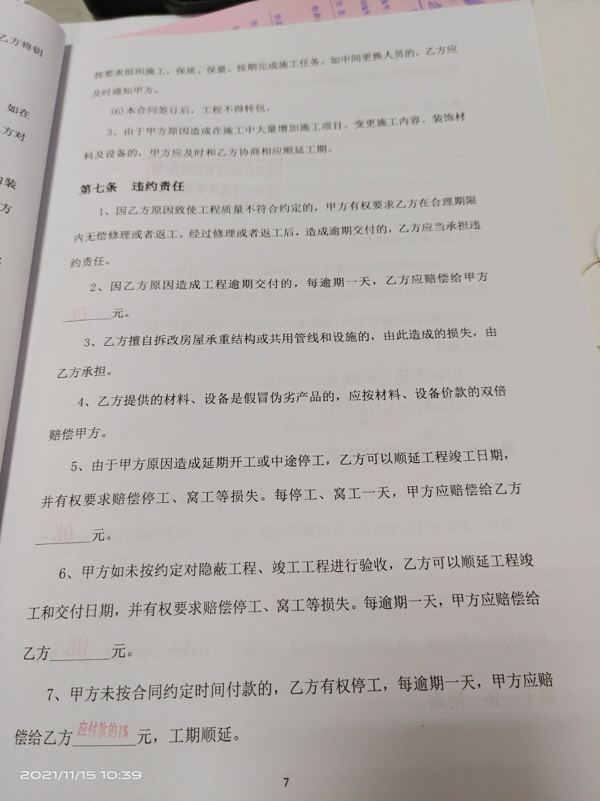 3. 合同定義的賠償不合理,乙方延期是按30元一天賠償,甲方卻是1%。