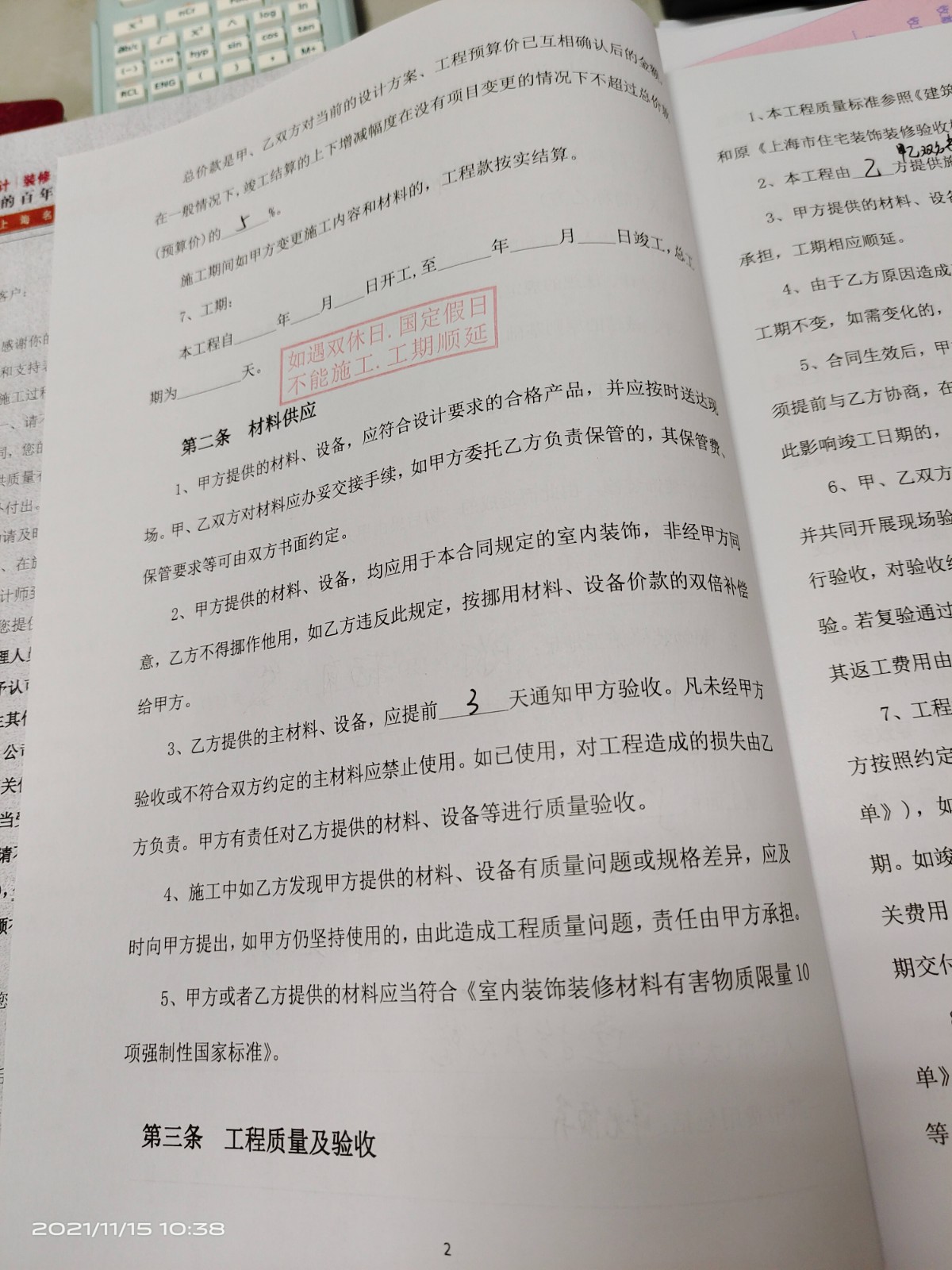 1. 合同上沒(méi)有填寫(xiě)時(shí)間,正式開(kāi)工日期為11.5日,到目前為止,只工作了3天,其余時(shí)間都出停工狀態(tài)。