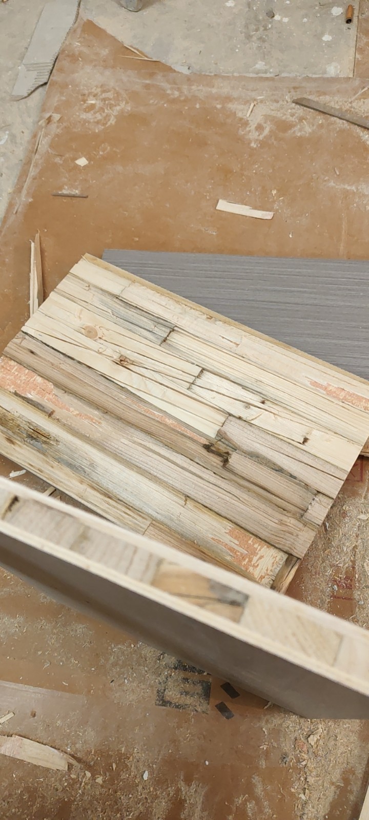 2. 木飾面表面破損兩處,并且直接用修補(bǔ)膏進(jìn)行修補(bǔ);一處直接安裝紋路錯誤,木臣一品工人當(dāng)場整改竟然想用背面明顯破損的殘破木片進(jìn)行拼接,被我當(dāng)場拒絕才沒有安裝,如果我不在場,那塊背面只有一半殘缺木材的木片就安裝上去了!