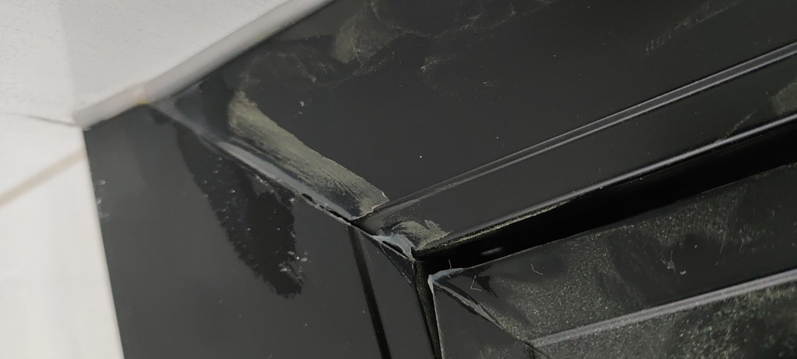 4. 隱形門封邊起鼓明顯,一側(cè)邊框除了明顯磕壞之外,還有一處大約10公分的封邊起鼓明顯,木臣一品對于這個質(zhì)量問題的回復(fù)是這是正常的!