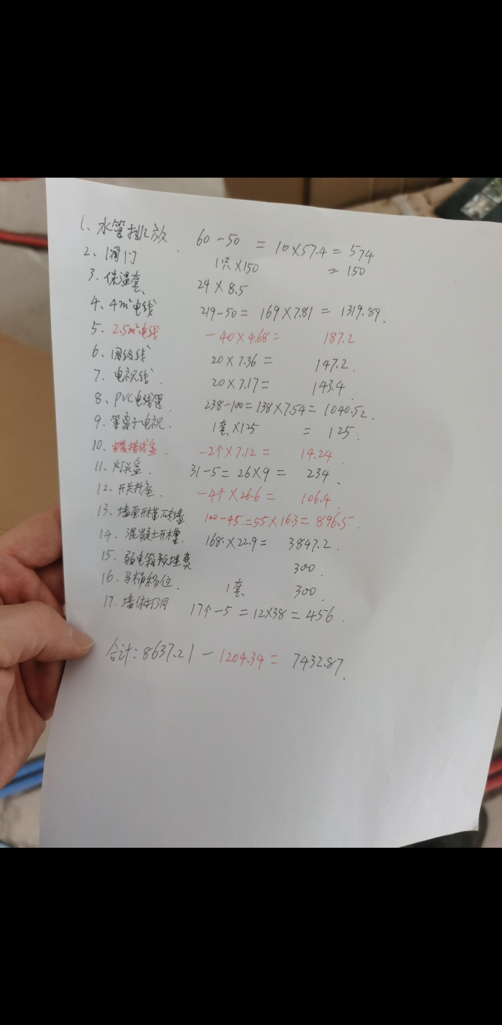 4.電線加料(應(yīng)該按照量測面積一口價全包)