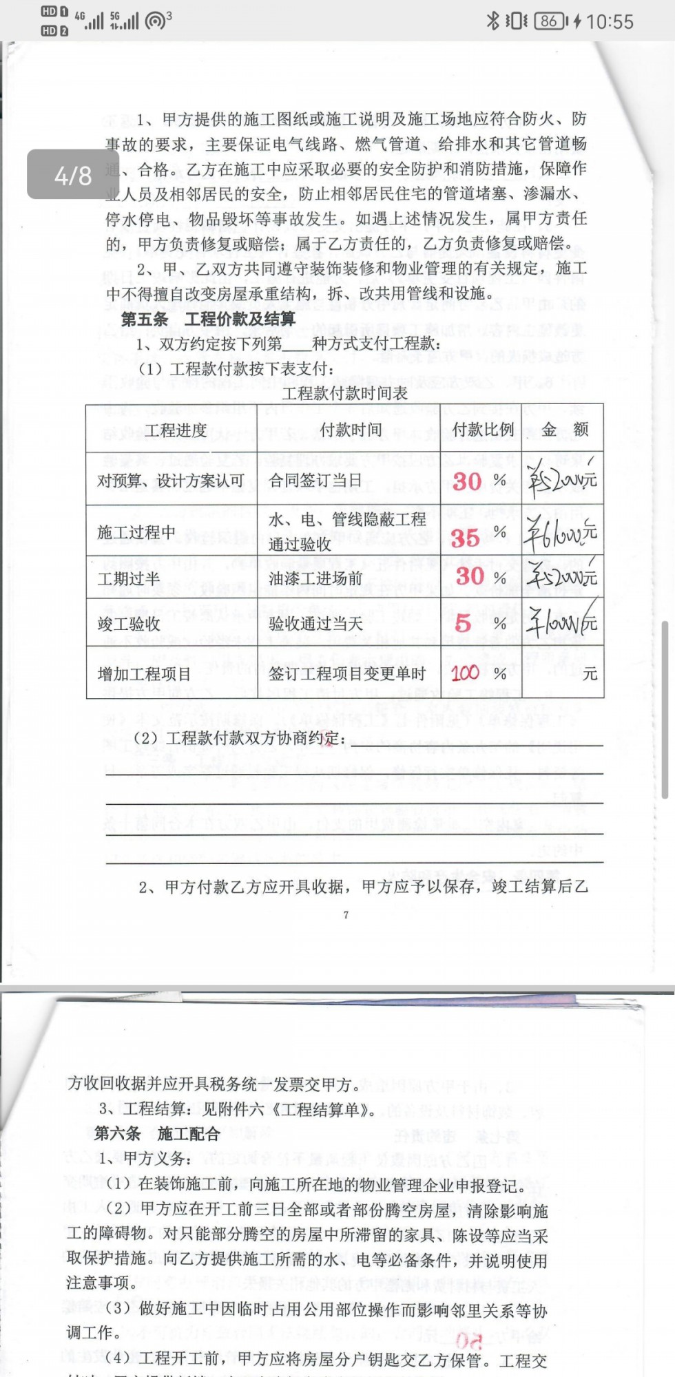 5.油漆一拖再拖,油漆工在施工過程中被公司派去做其他工程延誤多天