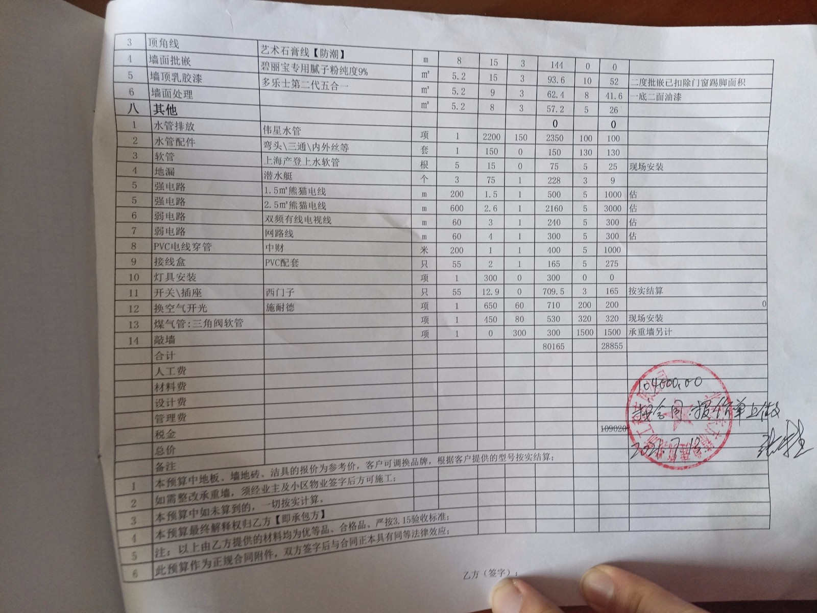 裝修公司同意價格降到1萬3,先付一萬尾款3000,一周沒幫我做完。我也沒時間拖了。就這樣吧。實在不行我再投訴