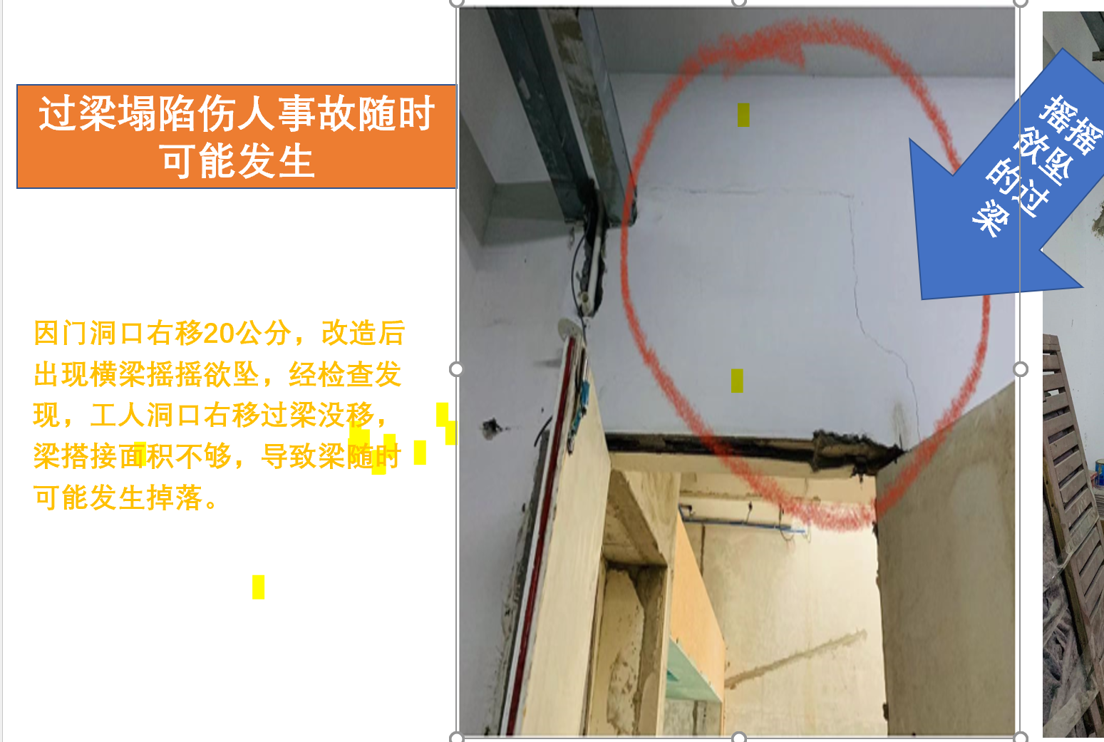 木工不懂結(jié)構(gòu),只移門洞不移梁,梁即將要墜落