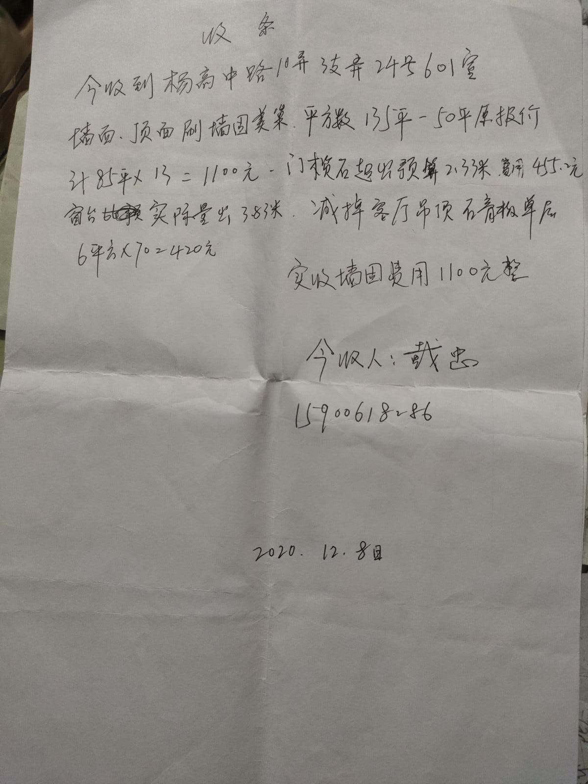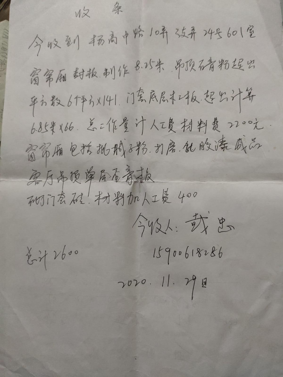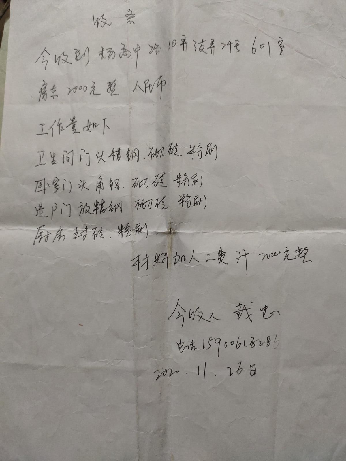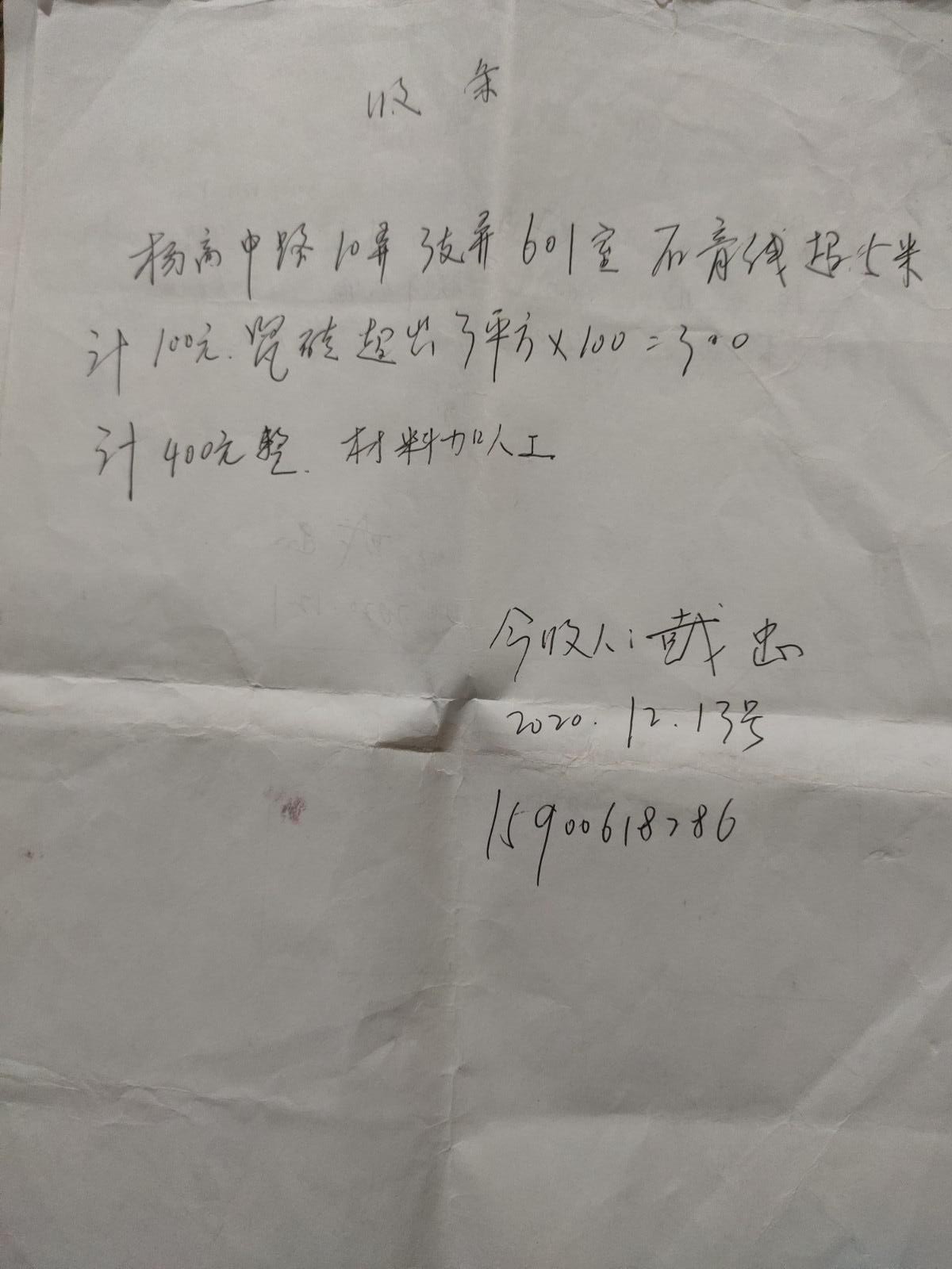 砌進(jìn)戶門頭槽鋼收費(fèi)現(xiàn)金400元,但未安裝,費(fèi)用也未退。