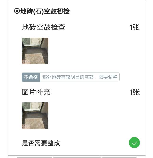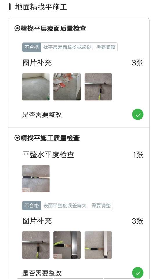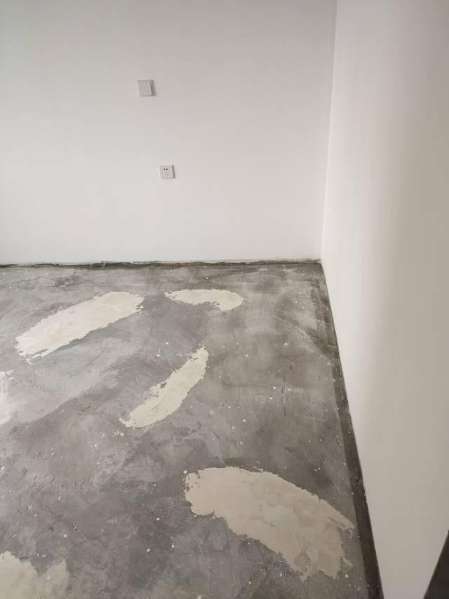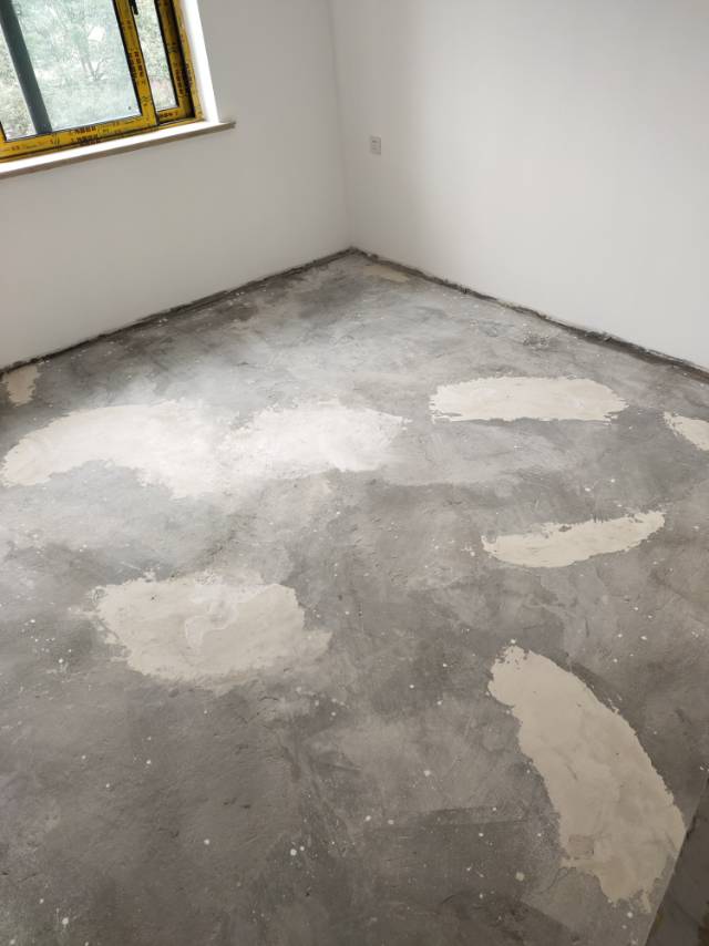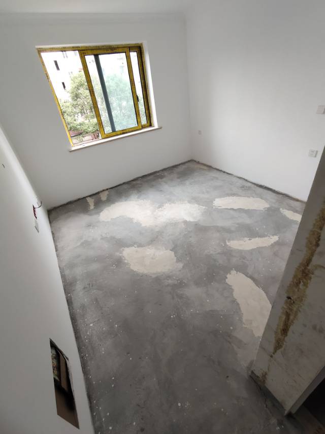 2.地面找平共反復(fù)修補(bǔ)六次,目前地板因地面不平無(wú)法安裝(修補(bǔ)地坪是前任隊(duì)長(zhǎng)的水電工修補(bǔ),用的是石膏粉修補(bǔ),在整改做自流平后依舊無(wú)法達(dá)到安裝地板要求。)
