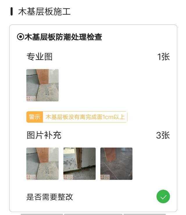 以上七點(diǎn)為目前主要存在問(wèn)題,其他還有多處細(xì)節(jié)問(wèn)題沒(méi)有一一舉例,施工中期我們業(yè)主找了監(jiān)理,并上門做了泥木驗(yàn)收,檢測(cè)報(bào)告存在問(wèn)題處附圖如下。