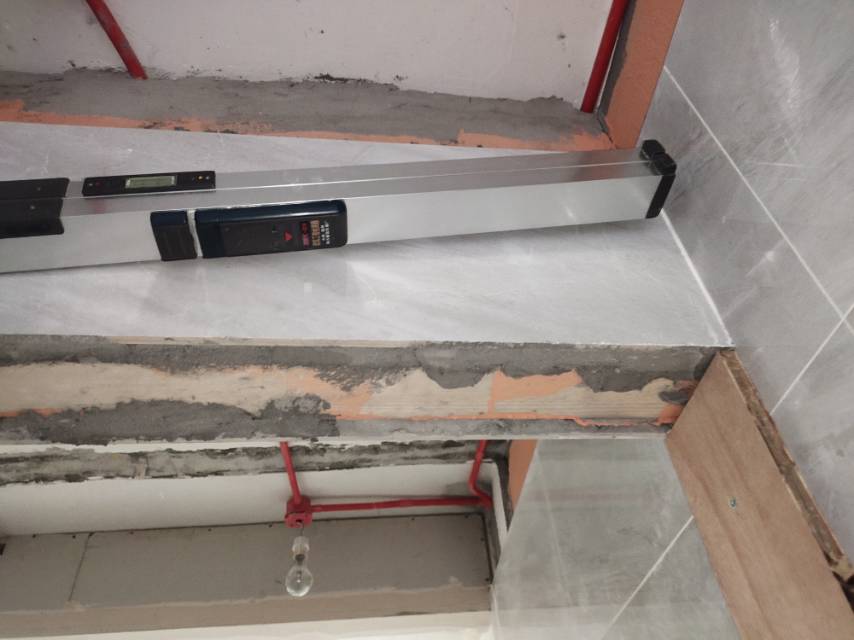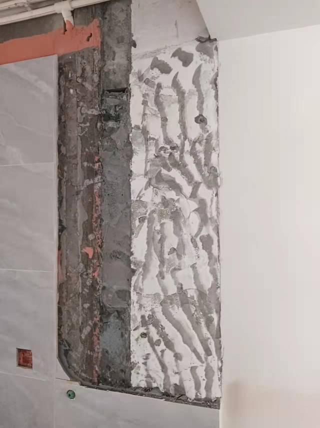 3.衛(wèi)生間砌墻和包管用的是輕體磚,墻體是斜的(后期包管的墻體要打膨脹螺絲固定淋浴噴頭)