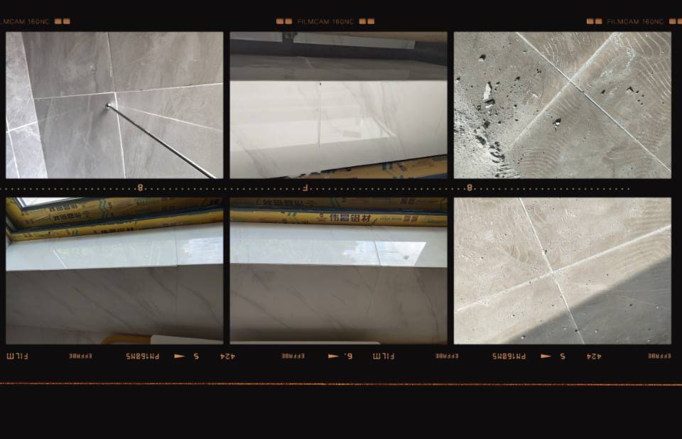 5.陽(yáng)臺(tái)的貼磚沒(méi)有清理膩?zhàn)訉?,直接貼磚,存在掉落隱患