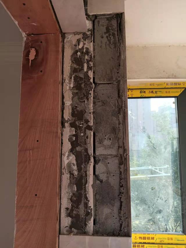 6.陽(yáng)臺(tái)處包管使用輕體磚,包管中存在使用碎的輕體磚填埋