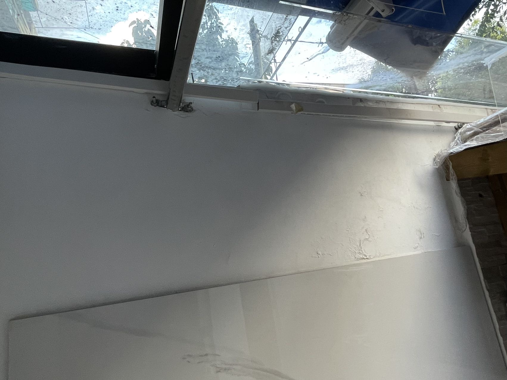 2 陽光房頂部結(jié)構(gòu)膠沒打全,造成屋內(nèi)漏水