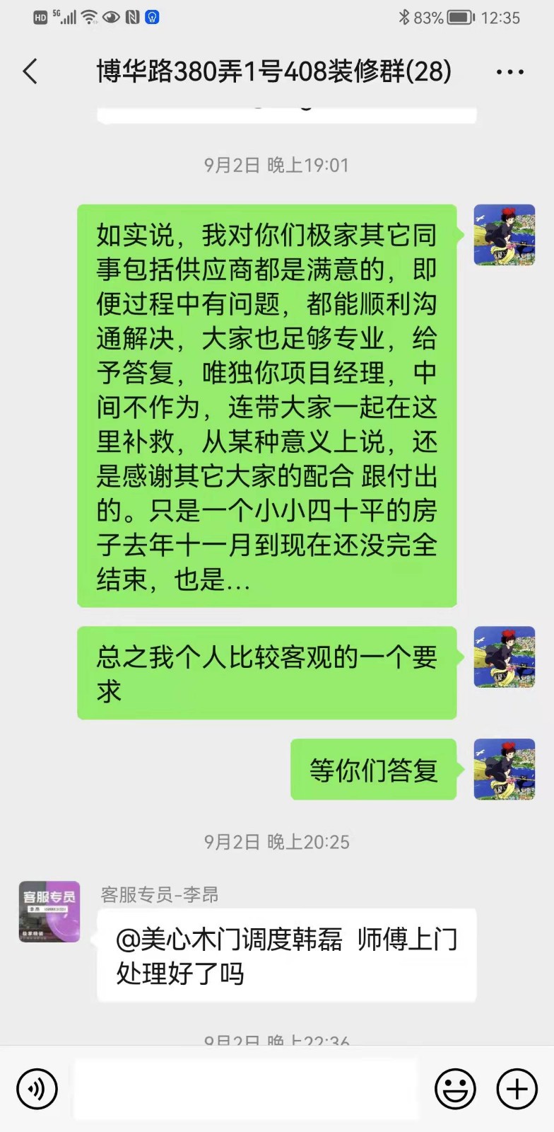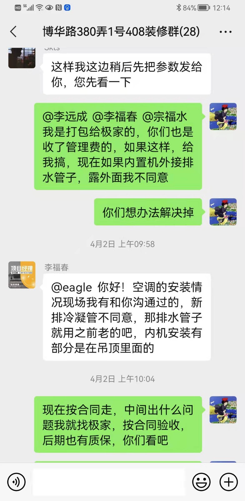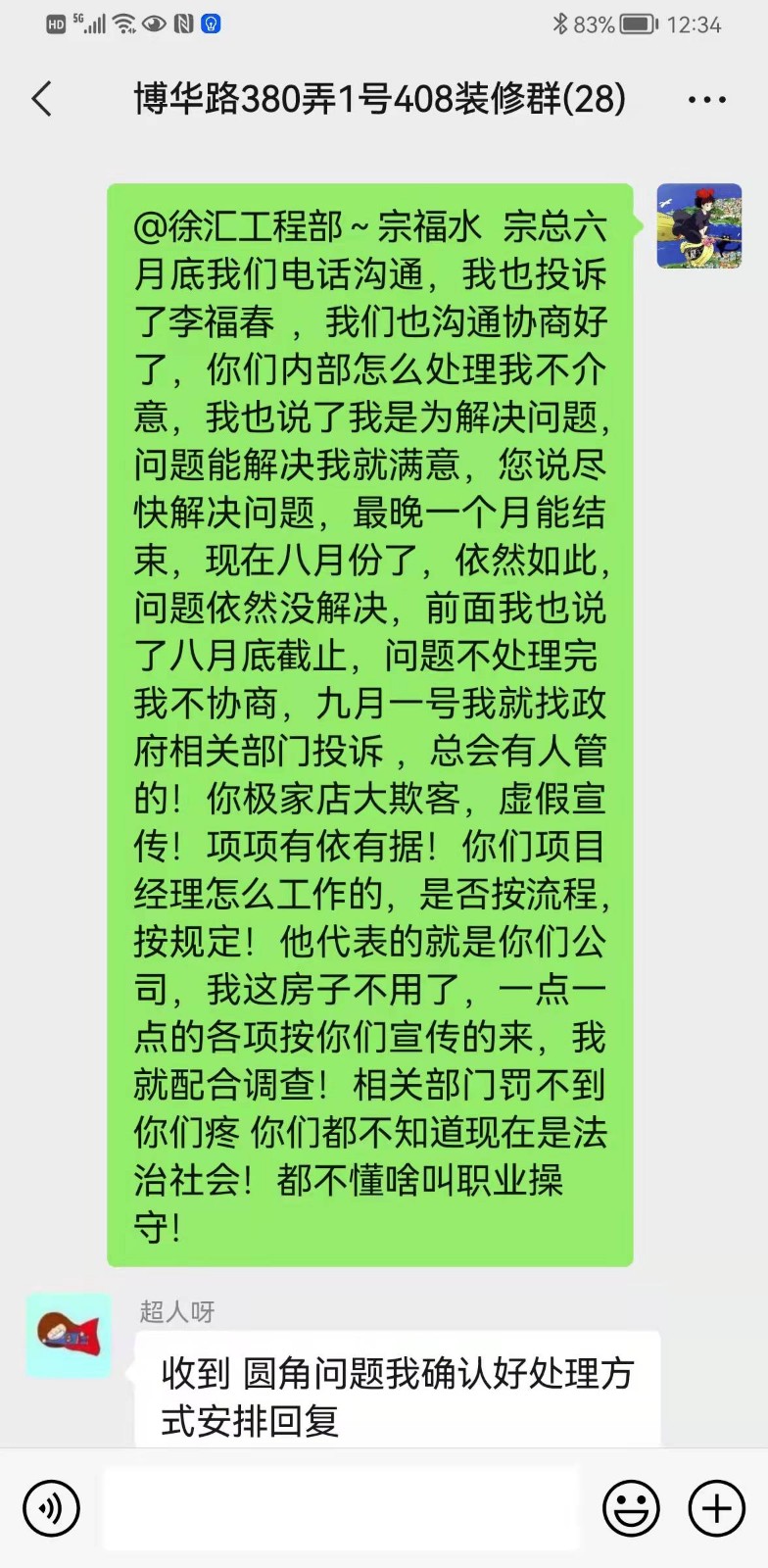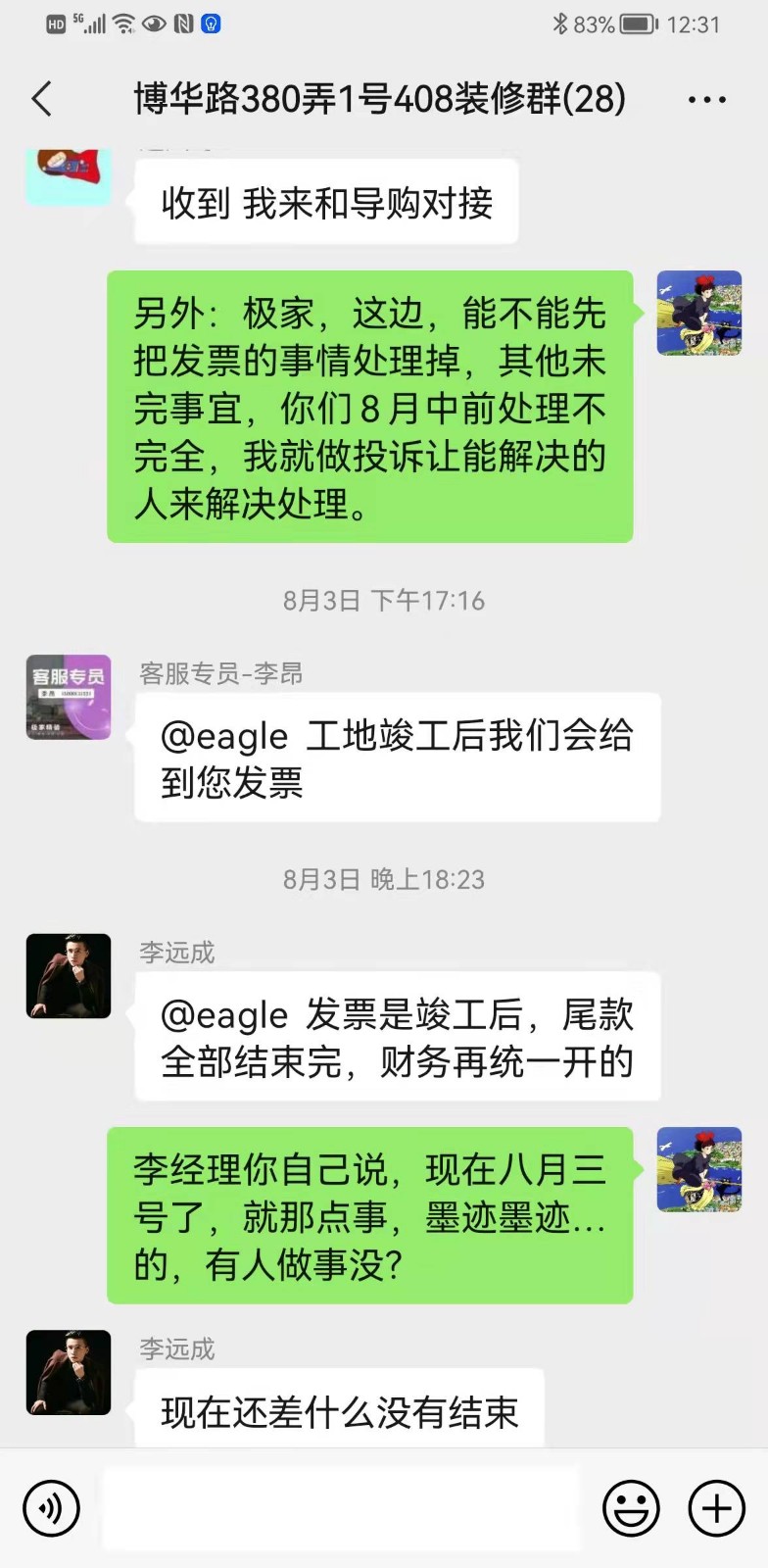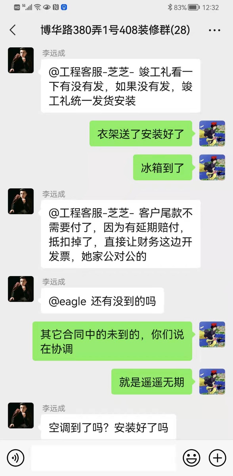 5. 項(xiàng)目最終交付手續(xù)一直沒(méi)有通知辦理,后續(xù)質(zhì)保如何界定,均無(wú)對(duì)接人員。微信群內(nèi)項(xiàng)目經(jīng)理,主管,客服均在,但半年了,基本沒(méi)響應(yīng),所謂的響應(yīng)就是知道了,會(huì)跟進(jìn),但從未實(shí)際處理過(guò)。追要發(fā)票,未開(kāi)發(fā)票始終不給落實(shí),不給解決問(wèn)題。