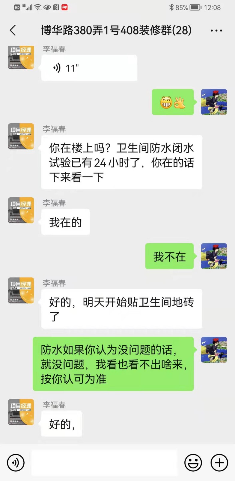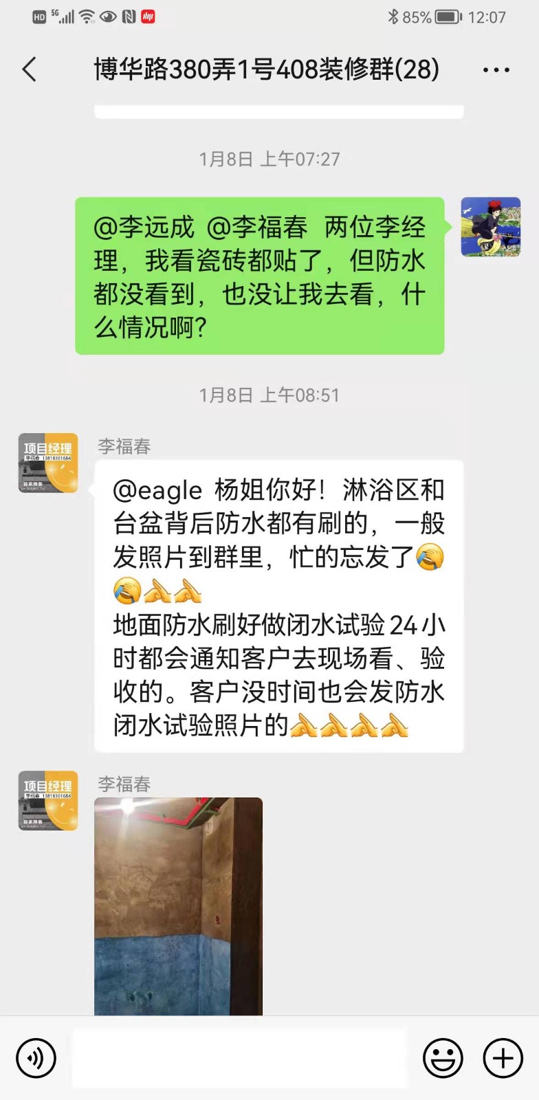 3. 懷疑陽(yáng)臺(tái)洗衣柜部分地面沒(méi)有做防水處理。(原因,衛(wèi)生間的群里給了做防水的圖片并交代了現(xiàn)場(chǎng)驗(yàn)收,我微信確認(rèn)過(guò)了,但陽(yáng)臺(tái)部分沒(méi)有提供防水圖片及后續(xù)驗(yàn)收,所以懷疑沒(méi)有做防水)