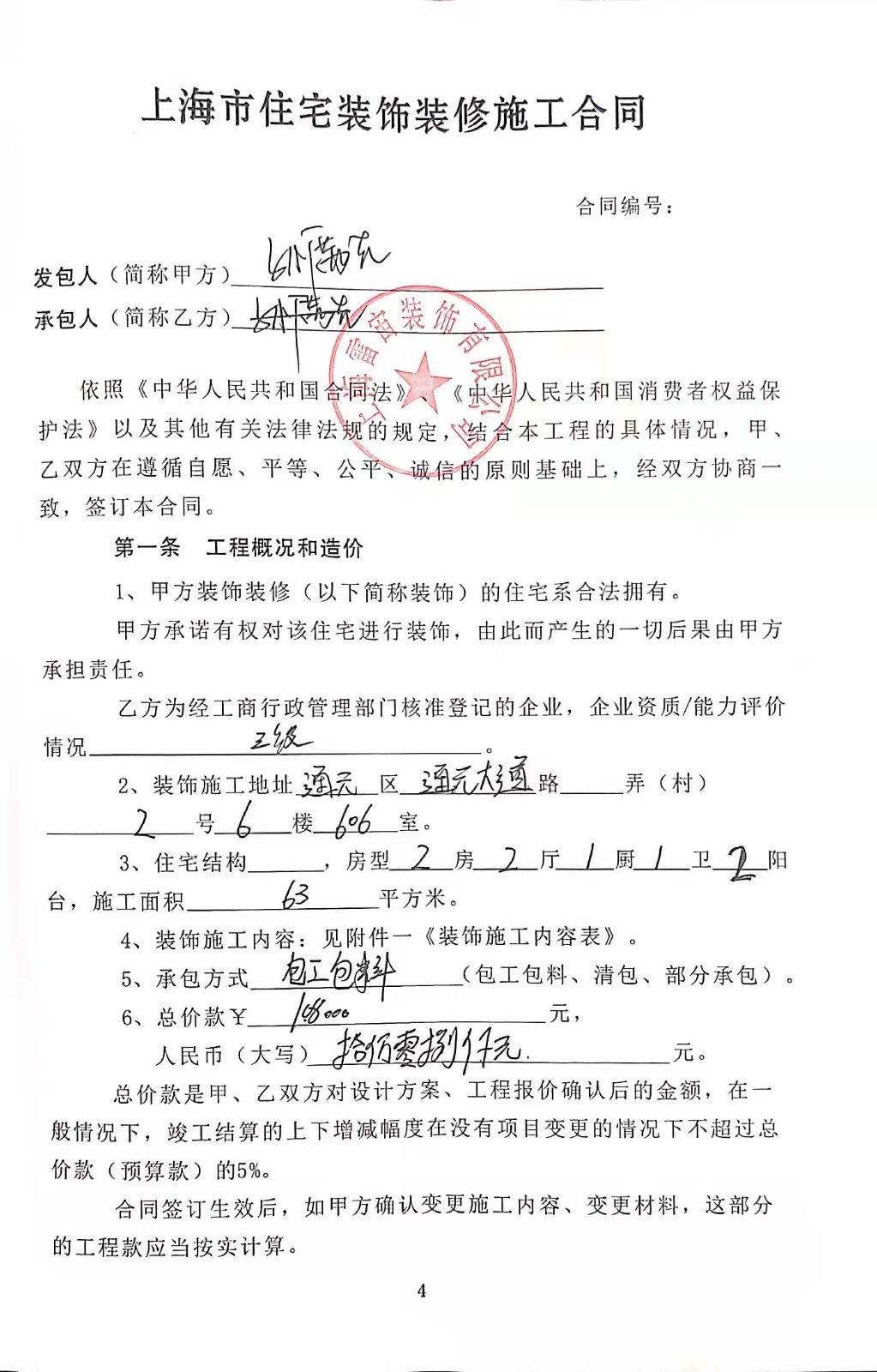 2021年8月29日,我與上海雷宙裝飾公司陳龍簽訂了位于浙江省嘉興市通元鎮(zhèn)通園大道1320號(hào)蘭園2-606室裝修合同,(由蘭園開(kāi)發(fā)商內(nèi)部員工推薦一個(gè)朋友給我裝修,其實(shí)也不是他這個(gè)朋友杭老板本人做,我估計(jì)是他又轉(zhuǎn)手賣(mài)給上海雷宙公司陳龍)。