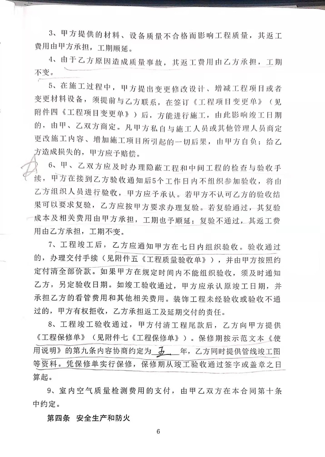 其二:水電安裝,合同上指明:隱蔽工程都要業(yè)主驗(yàn)收合格后才能施工,但是水表試壓并未讓我們到場(chǎng),而且我再三要求,弱電箱要大的,里面要擺放路由器及插座,而且報(bào)價(jià)單上有指定強(qiáng)電,弱電箱更換這個(gè)項(xiàng)目,以西門(mén)子品牌,但是他們不但不更換,后續(xù)更換還是買(mǎi)最次的沒(méi)有品牌的300*200冒充西門(mén)子來(lái)欺騙我,最后我自己買(mǎi)了施耐德的300*450,但是拖了40多天才返工;在這前提下工期無(wú)形中就延后太久了。