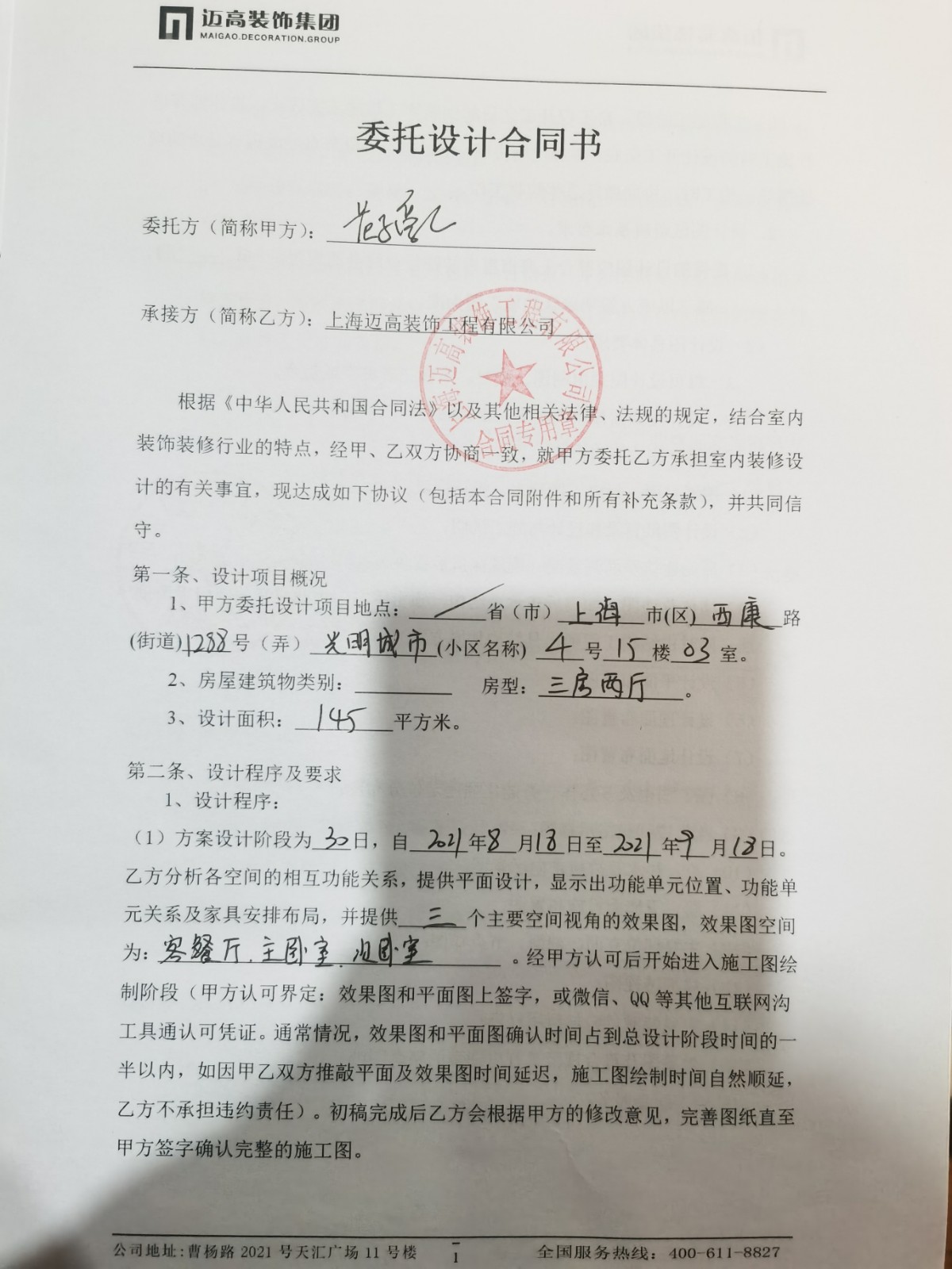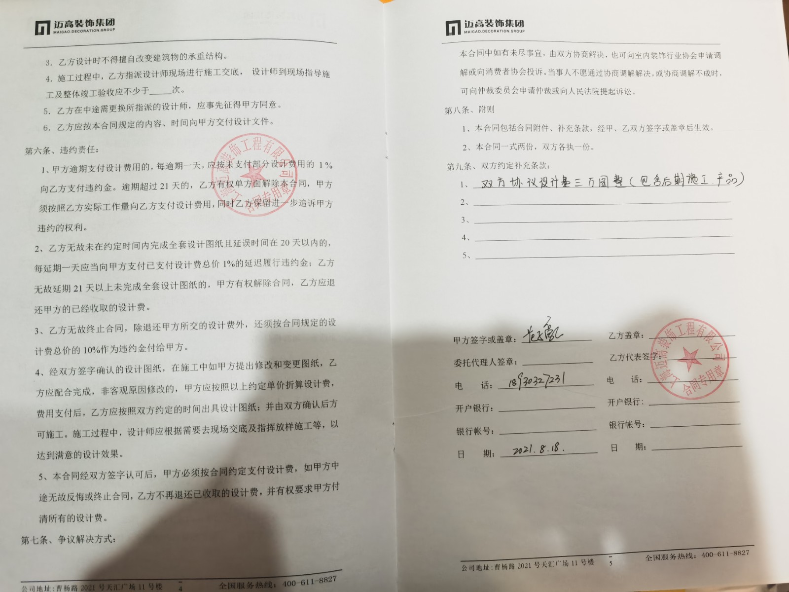 2021年8月18日,與“上海邁高裝飾工程有限公司“簽訂設(shè)計(jì)合同,由于①設(shè)計(jì)師給出的設(shè)計(jì)稿沒(méi)有達(dá)到我的要求,且在溝通修改后仍然不滿意;②對(duì)方經(jīng)溝通后給出的三次報(bào)價(jià):110萬(wàn)/120萬(wàn)/130萬(wàn),都遠(yuǎn)超出來(lái)我的預(yù)算(我已再三明確預(yù)算80萬(wàn)),綜合上述兩點(diǎn),我沒(méi)有時(shí)間和精力繼續(xù)合作,遂與對(duì)方協(xié)商解除合同。
