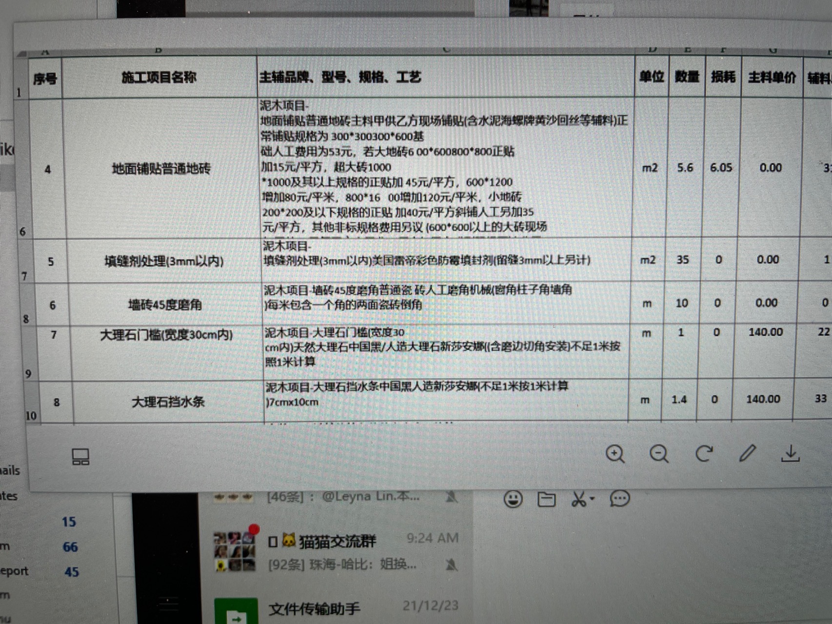 5. 廚房面積有6.6平米,美縫數(shù)量只做了28.8米的預(yù)算