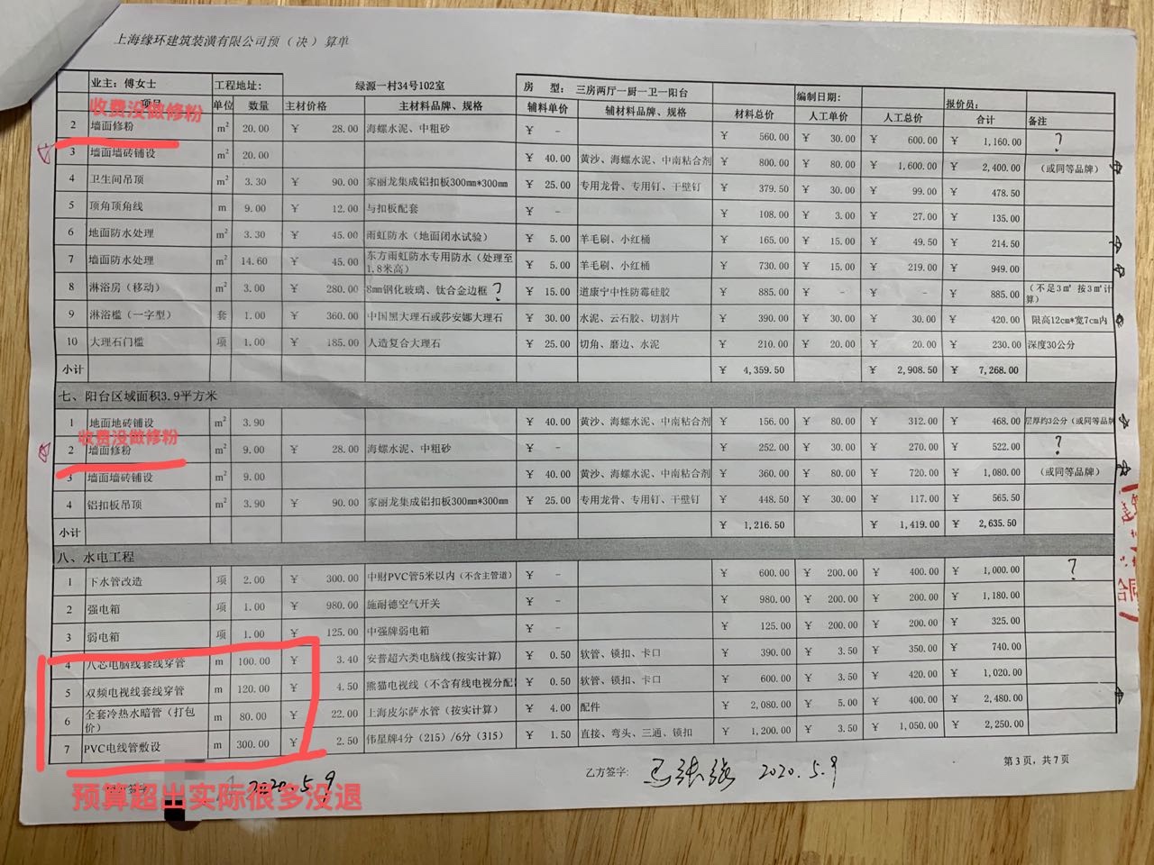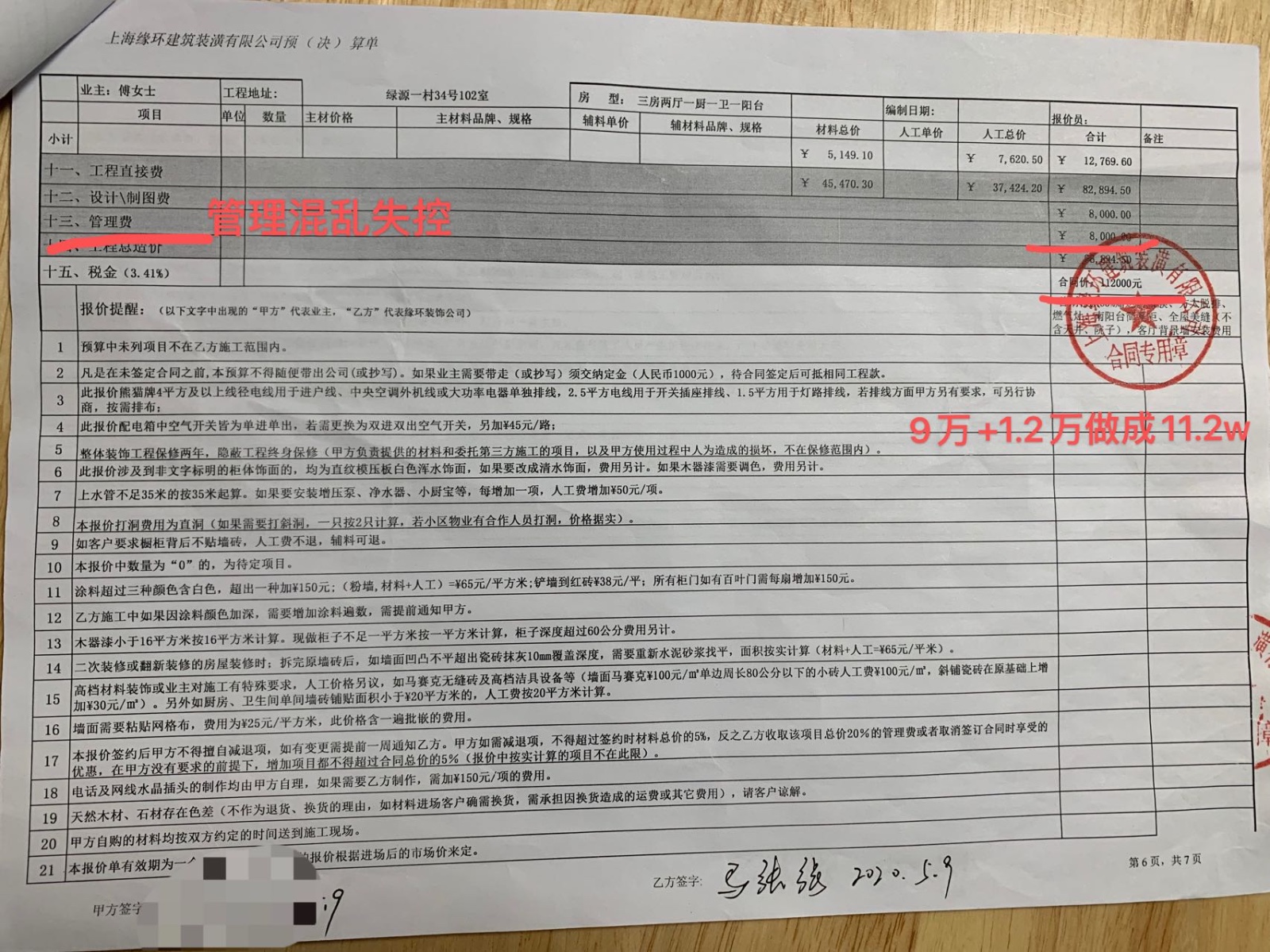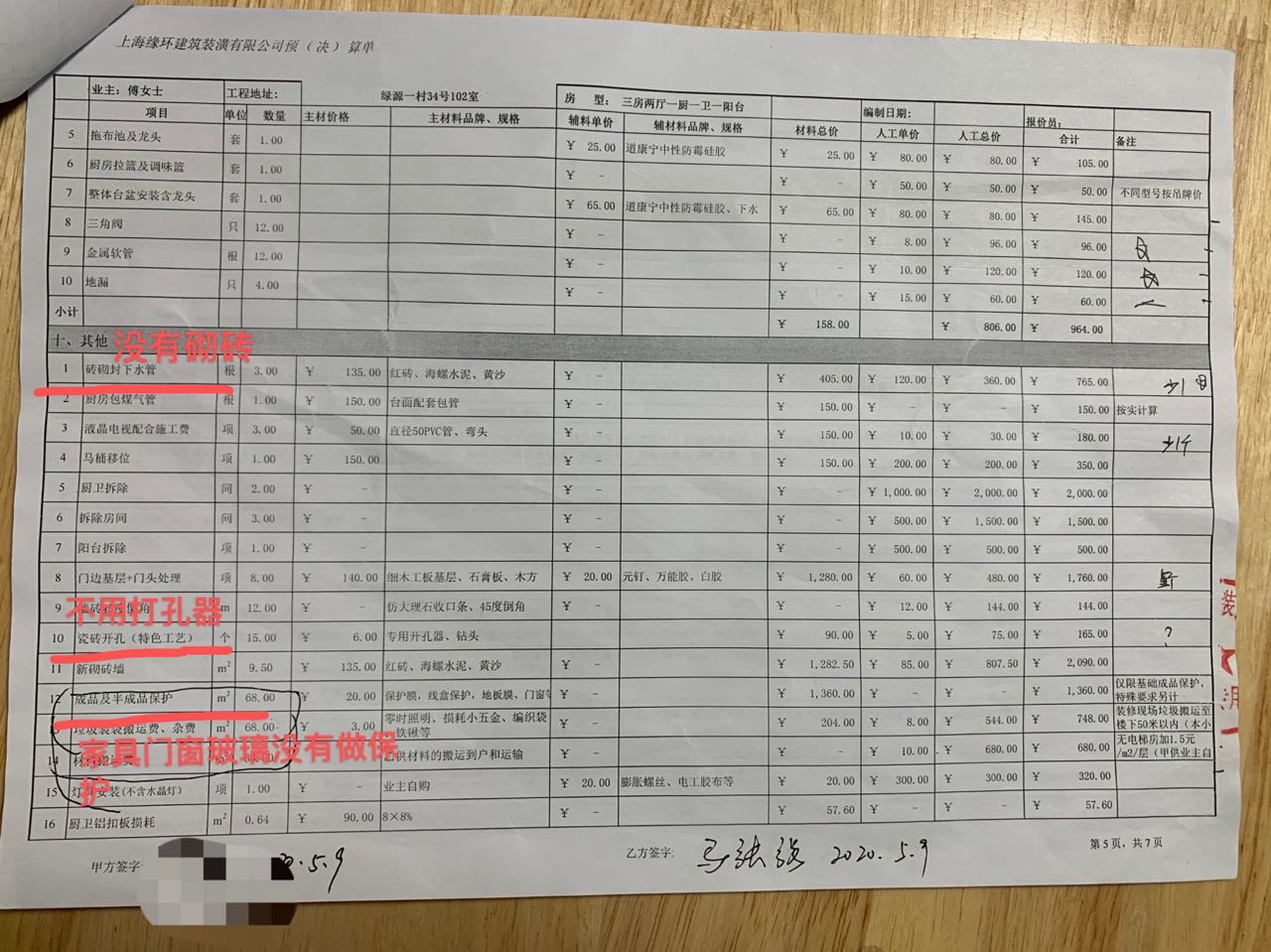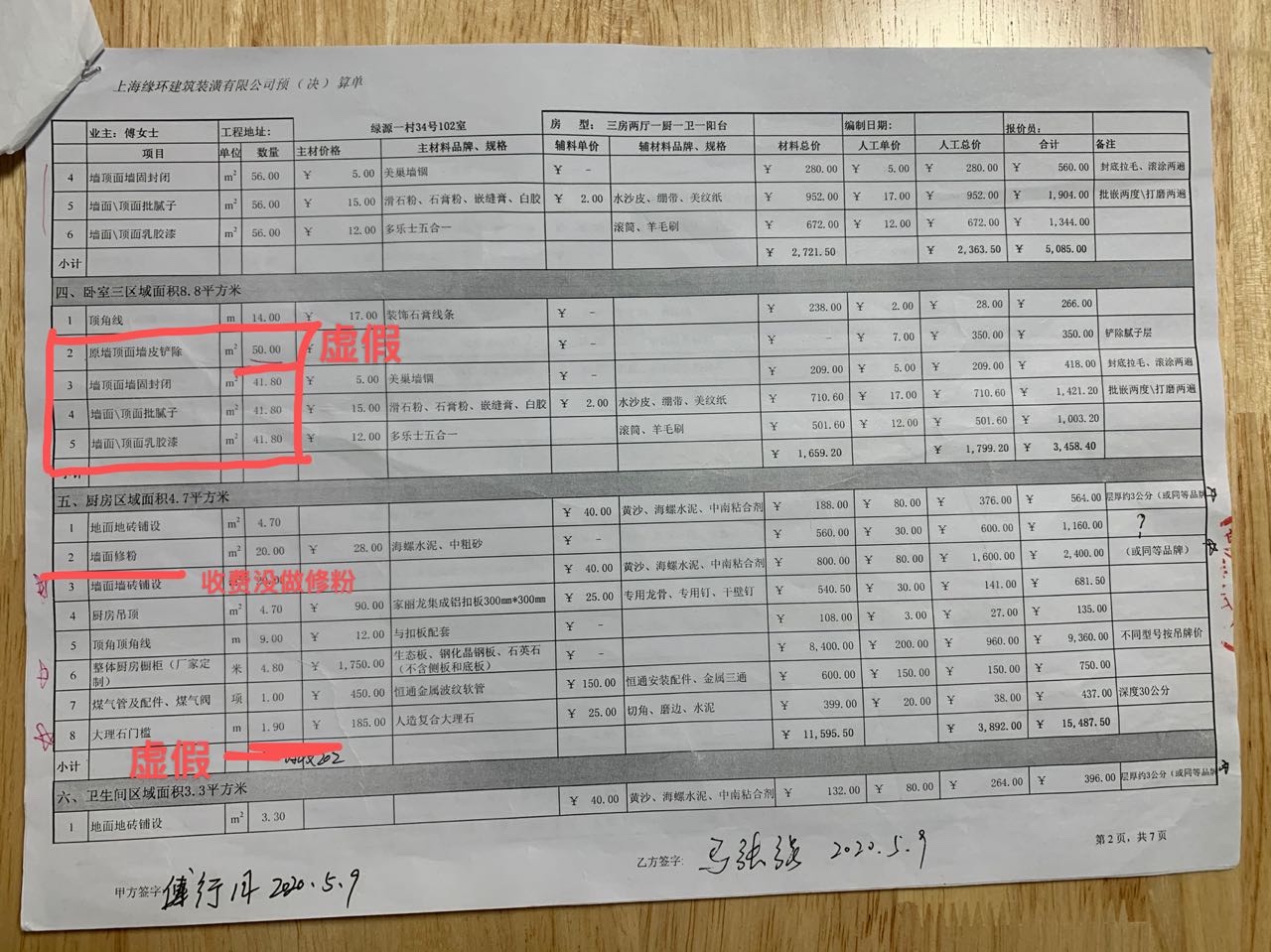 因施工期間管理混亂監(jiān)管不力嚴(yán)重失控,被業(yè)主無意中發(fā)現(xiàn)偷工減料,多次出現(xiàn)錯誤返工,導(dǎo)致延期到2020/9/26才交房,整個過程中節(jié)點(diǎn)驗(yàn)收和交房都沒有做任何測試測量材料核對,只是走流程要求不懂裝修的業(yè)主簽字。從合同附件報價單弄虛作假、施工偷工減料、之后發(fā)現(xiàn)櫥柜柜體顏色和儲柜門板做錯,電線被擅自更換、入住兩個月左右墻面出現(xiàn)裂縫,反復(fù)修補(bǔ)問題依舊,衣柜門把手脫層。至今不解決問題。上海緣環(huán)建筑裝潢有限公司嚴(yán)重不講誠信。