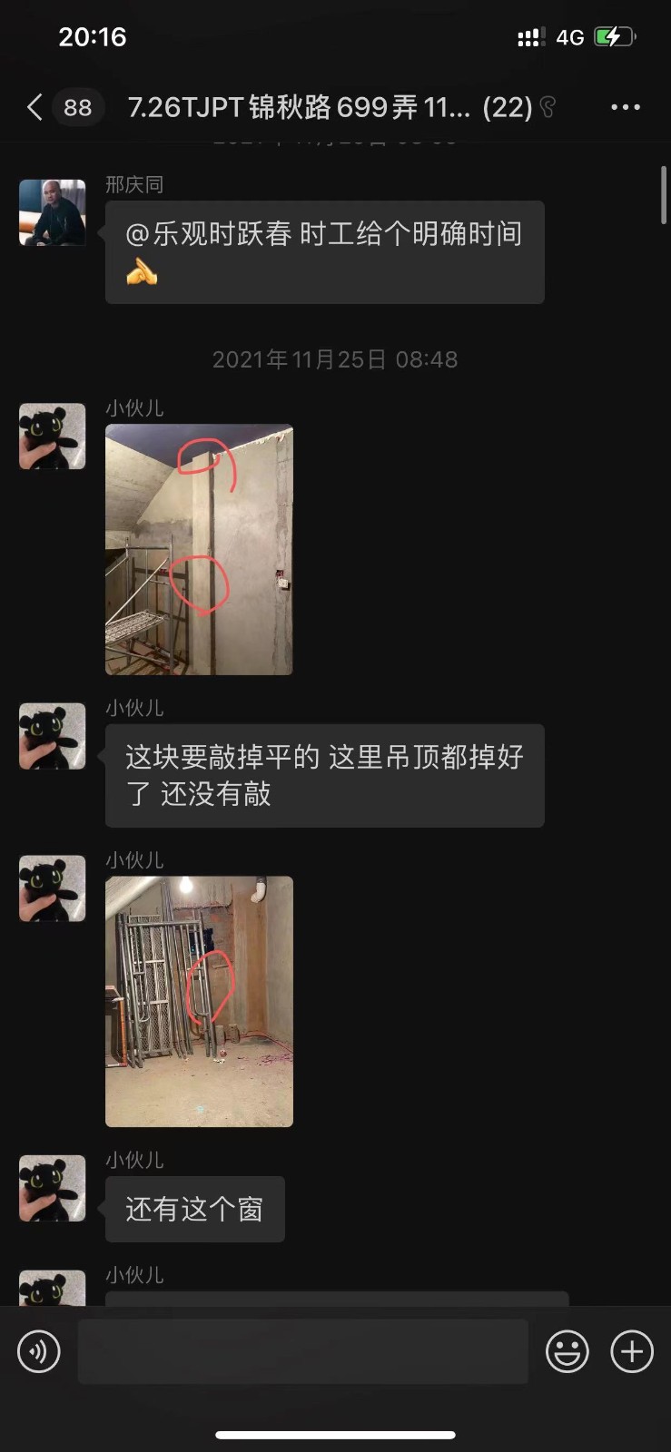例如 1:裝修第一步中的敲墻工程就遺留多處未完成項目,期間我們催過也核實過許多次,要不就是不回復,要不就說太忙了,沒人來做。眼看時間來不及了,就說此處內(nèi)容不在設計預案內(nèi)。(預案設計中有的內(nèi)容,直接說這是之前的,不作數(shù))。8月初的工程內(nèi)容,直到12月中旬才回來繼續(xù)做遺留工程,做完后,不及時清理垃圾(清理施工垃圾就要找人找2個星期)直接影響了后續(xù)找地坪的工程。(裝修公司知道遺留工程會影響后續(xù)工程的情況下,直言找不到工人 來不及。)