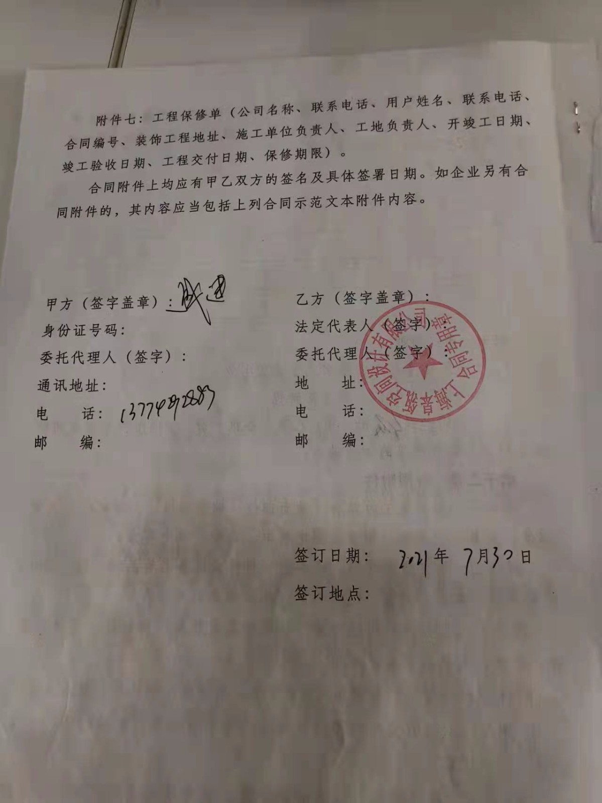 1.我與皋瓴空間裝修顧戴路店公司8月份簽裝修合同,9月份進(jìn)場施工,裝修期限到11月30日結(jié)束,到目前為止仍然未完工,客廳移門未安裝,櫥柜部分未安裝。導(dǎo)致無法搬家,只能繼續(xù)租房,增加了我的裝修成本