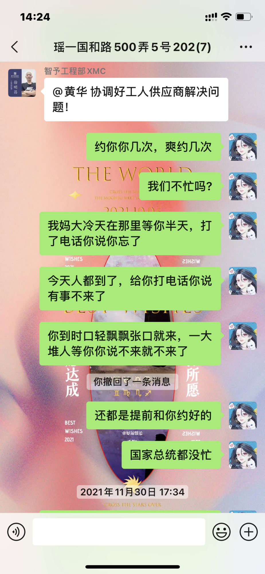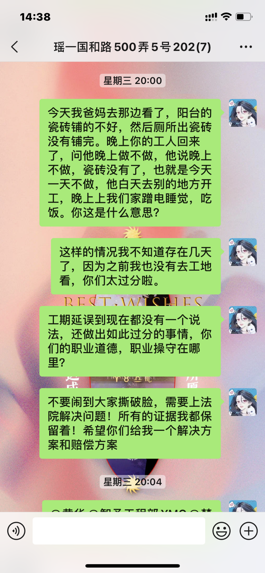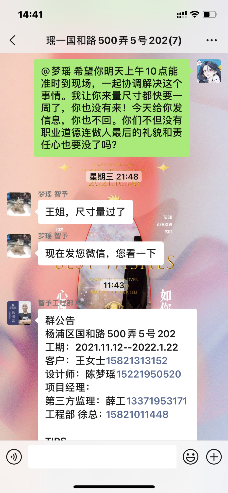 | 投訴類型 | 施工拖延 | 投訴人 | 王** | 被投訴單位 | 上海智予空間設(shè)計工程有限公司 |