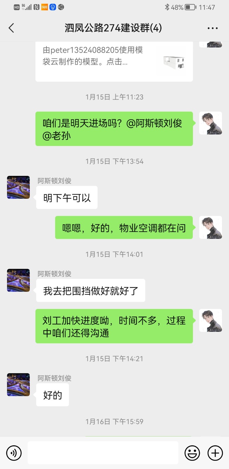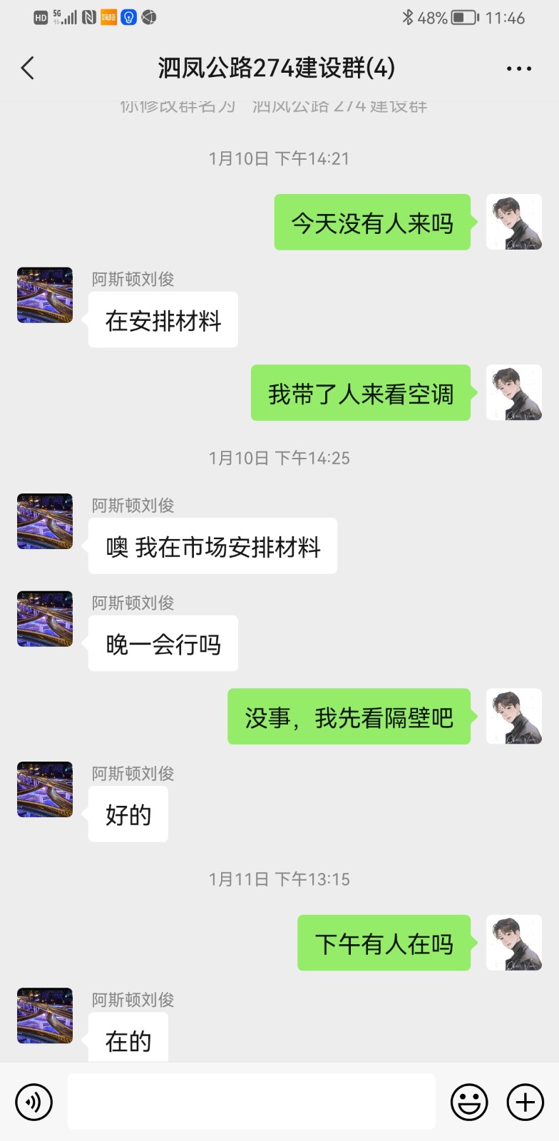 9號當(dāng)天一大早過去發(fā)現(xiàn)沒人,給群聊(中間人、我和現(xiàn)場經(jīng)理)發(fā)信息,現(xiàn)場經(jīng)理小劉說在市場上安排材料就沒管,以后幾天一直這樣,13號的時候感覺不對勁,仔細(xì)追問,小劉回復(fù)上一個工程還沒完工,過兩天就入場。結(jié)果過了兩天后明天,第二天再問說馬上到,然后沒人來又拖一天,18號時候跟我說上個工程出現(xiàn)在糾紛在派出所,馬上就處理完了,之后19號終于入場做了圍擋,然后20號做了幾個輕鋼框架就再沒動靜了。