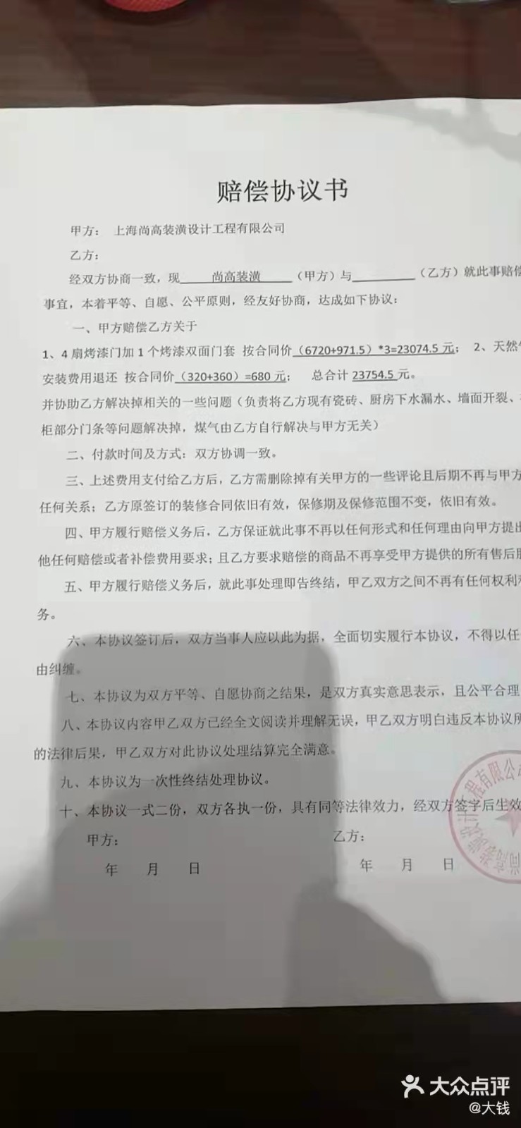 1. 四扇烤漆門及烤漆門套按假一賠三賠付,合計(jì)23074.5元,天然氣安裝費(fèi)退還680元,總計(jì)23755元。