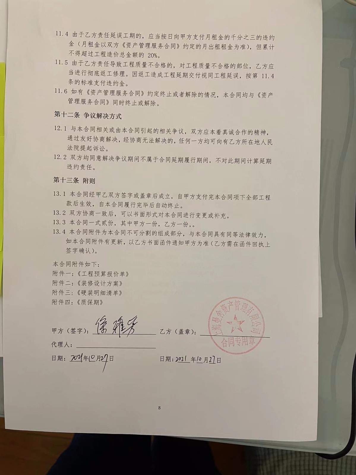 上海曼舍資產(chǎn)管理有限公司(自如集團(tuán)),與客戶簽訂裝修施工及長期出租2份合同。11/1業(yè)主交屋曼舍施工,約定55個工作日應(yīng)1/18峻工,但曼舍破壞防水被投訴、量錯房屋尺寸導(dǎo)致返工、擅自離場停工、安裝不規(guī)范等違約行為導(dǎo)致委托人無法實現(xiàn)合同目的。春節(jié)前曼舍估新峻工是3月下旬,峻工延遲2個月,曼舍說延遲每工作日賠償人民幣66元,業(yè)主房子在靜安區(qū)市中心,市值1000萬。業(yè)主1/4單方解除合同止損,曼舍還出公司函向業(yè)主索取20%總裝修款及已入場成本。工程雖停在27個工作日,但同行評估現(xiàn)場是10-12工作日進(jìn)度,連隱蔽工程都未完成。