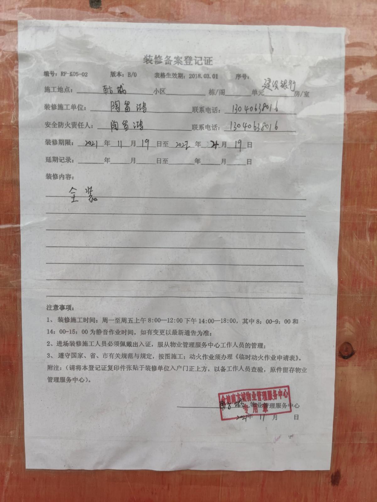 注意事項第一條規(guī)定了具體的裝修時間。周末是不能裝修的。而且留的手機打不通。