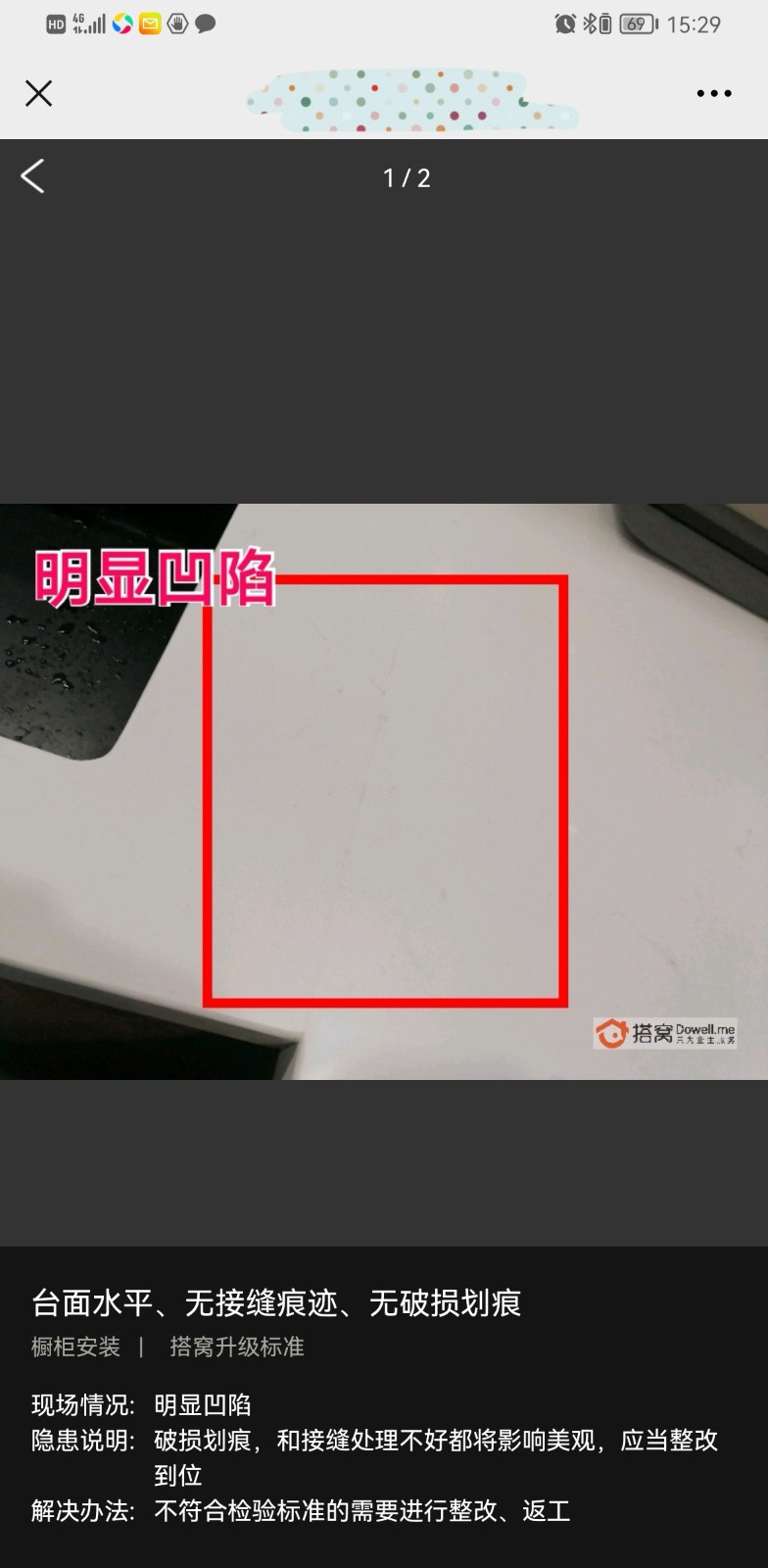 1.廚房臺面因質(zhì)量問題二次返工,造成臺面接縫處凹陷不平整,拖延一年時間未能給到解決方案或給到解決方案無法接受。