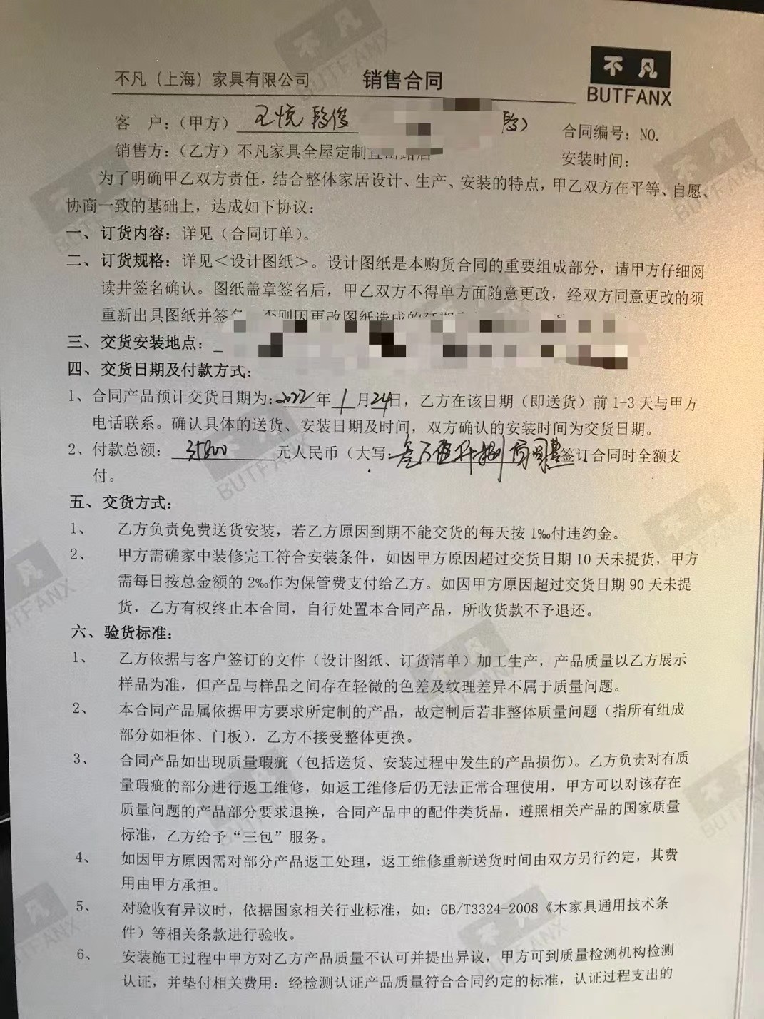 | 投訴類型 | 施工拖延 | 投訴人 | 段** | 被投訴單位 | 不凡(上海)家具有限公司 |