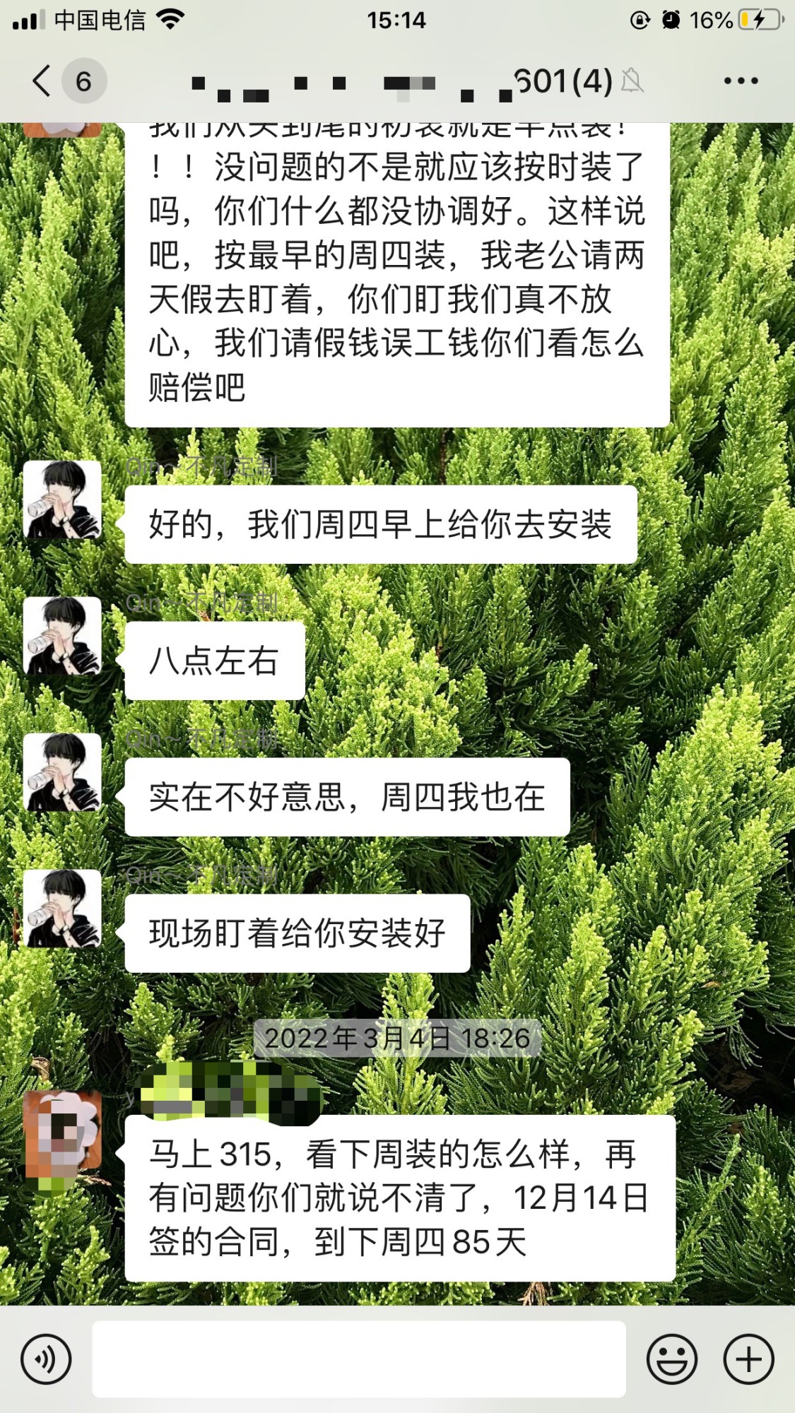 | 裝修面積 | 15m2 | 投訴人手機(jī) | 1893079**** | 被投訴人手機(jī) | 1762112**** |