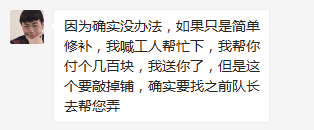 第三、墻面油漆施工階段,這家公司的油漆工一邊干活,一邊拿著手機上交友網(wǎng)站和人聊天,說女嘉賓你好,我是蘇州市區(qū)人,我明年退休,我和我兒子在蘇州市區(qū)都有自己的房子,我每天開車到上海上班。然后家里來個送建材的人,他立刻就把手機打開,給大家看他玩女人的自拍視頻。然后說怎么樣,這是滬太路的富婆,在上海有三套房子,她想和我結(jié)婚。接著問我,你玩不玩女人,你不玩女人,還算不算男人。我家的油漆活干了一半,他說和一個女人約好了今晚開房,在金山等他。接著自己的裝修垃圾也不收拾。直接把我家的幾十個紙箱全部拿走賣錢。家里的墻面大面積沒有打磨,墻面凹凸不平,油漆做的白一塊 ,黑一塊。后來經(jīng)過我多方投訴,過了幾個月,這家公司才來人處理,連處理的材料費都是我出的。這家公司的油漆工還在電話里對我進行人身威脅,直接說:你在明處,我在暗處,我在上海20年不是白混的。