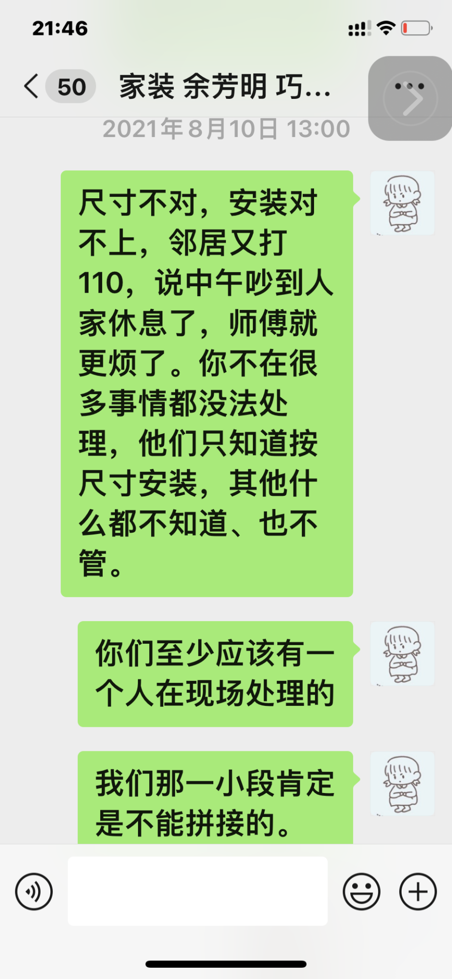 | 裝修面積 | 46m2 | 投訴人手機(jī) | 1731747**** | 被投訴人手機(jī) | 1851210**** |