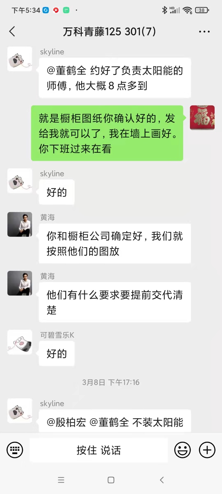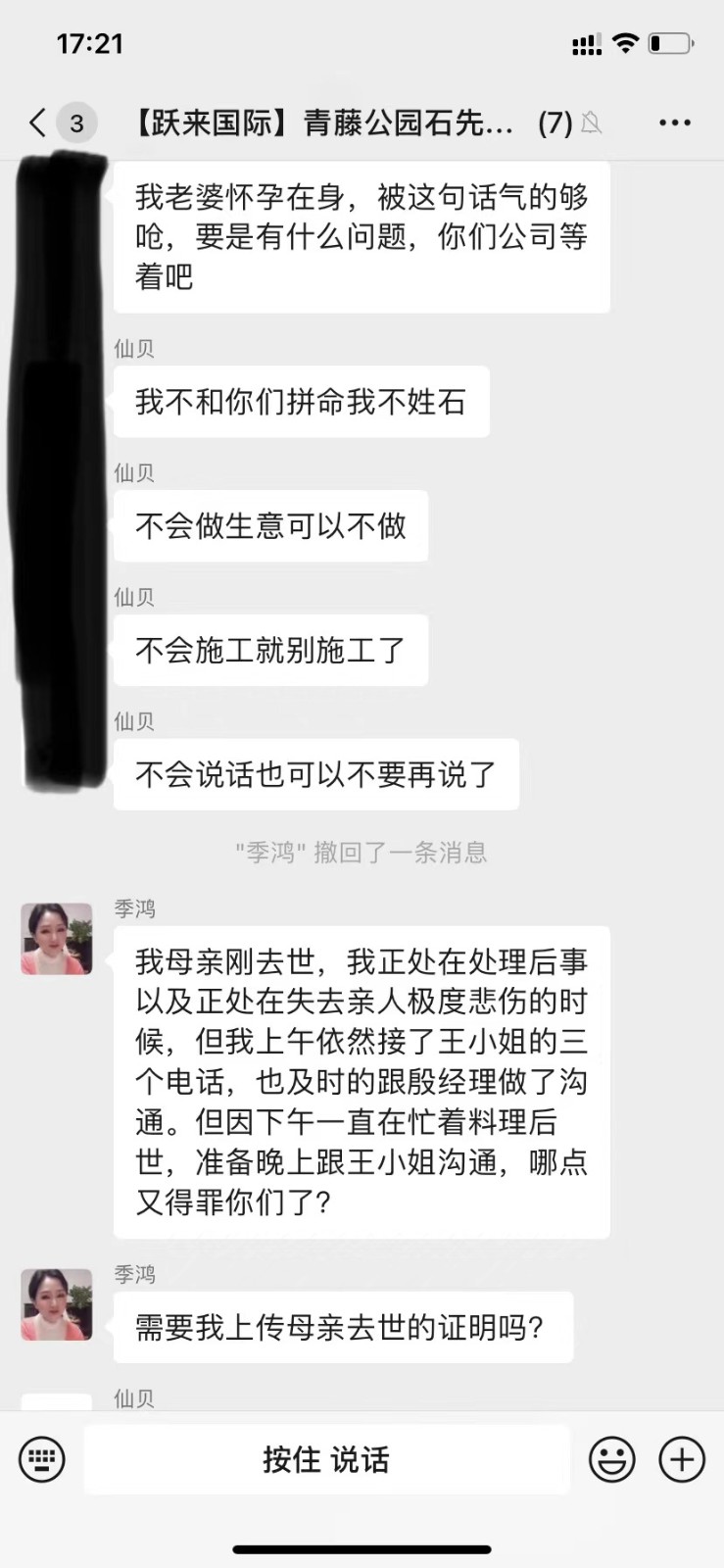 第一,2022年1月砌墻工藝出現(xiàn)問題時,我要求一定更換項目經理,公司口頭答應,且最初簽訂合同時公司人員承諾期間出現(xiàn)問題可更換項目經理(有錄音為證),然而2022年3月各項工作交接時頻繁出現(xiàn)問題,且時隔兩月后發(fā)現(xiàn)公司沒有為我更換項目經理,此項目經理有嚴重的道德品質問題,是否為公司在職員工待核實,故此為嚴重的失信問題。