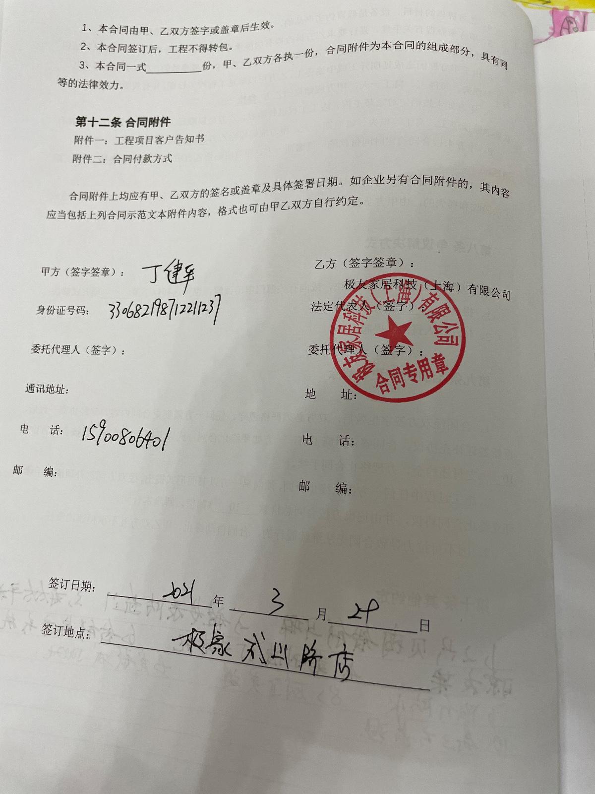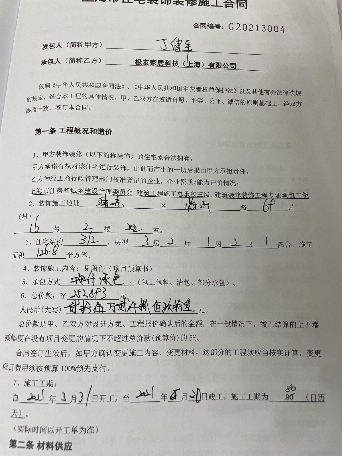 | 投訴類型 | 施工拖延 | 投訴人 | 朱** | 被投訴單位 | 極友家居科技(上海)有限公司 |
